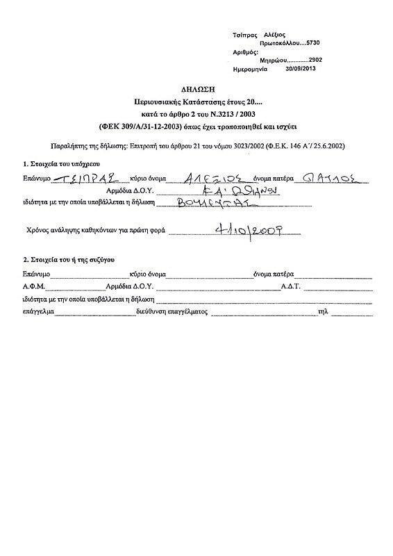 Τις δηλώσεις περιουσιακής κατάστασης παρέδωσε στους δημοσιογράφους ο αρμόδιος για τον έλεγχο αντιπρόεδρος της Βουλής, Γιώργος Βαρεμένος. Όπως αναφέρεται από την Επιτροπή Ελέγχου Δηλώσεων Περιουσιακής Κατάστασης, ανατέθηκε η διενέργεια λογιστικής ή οικονομικής πραγματογνωμοσύνης ή άλλων ελεγκτικών πράξεων σε ορκωτούς ελεγκτές λογιστές, οι οποίοι εξέτασαν τις δηλώσεις κι όπου συνέτρεχε λόγος, κάλεσαν τους υπόχρεους, προς παροχή διευκρινίσεων και τελικώς συνέταξαν ατομικές εκθέσεις ελέγχου για κάθε ελεγχόμενο.