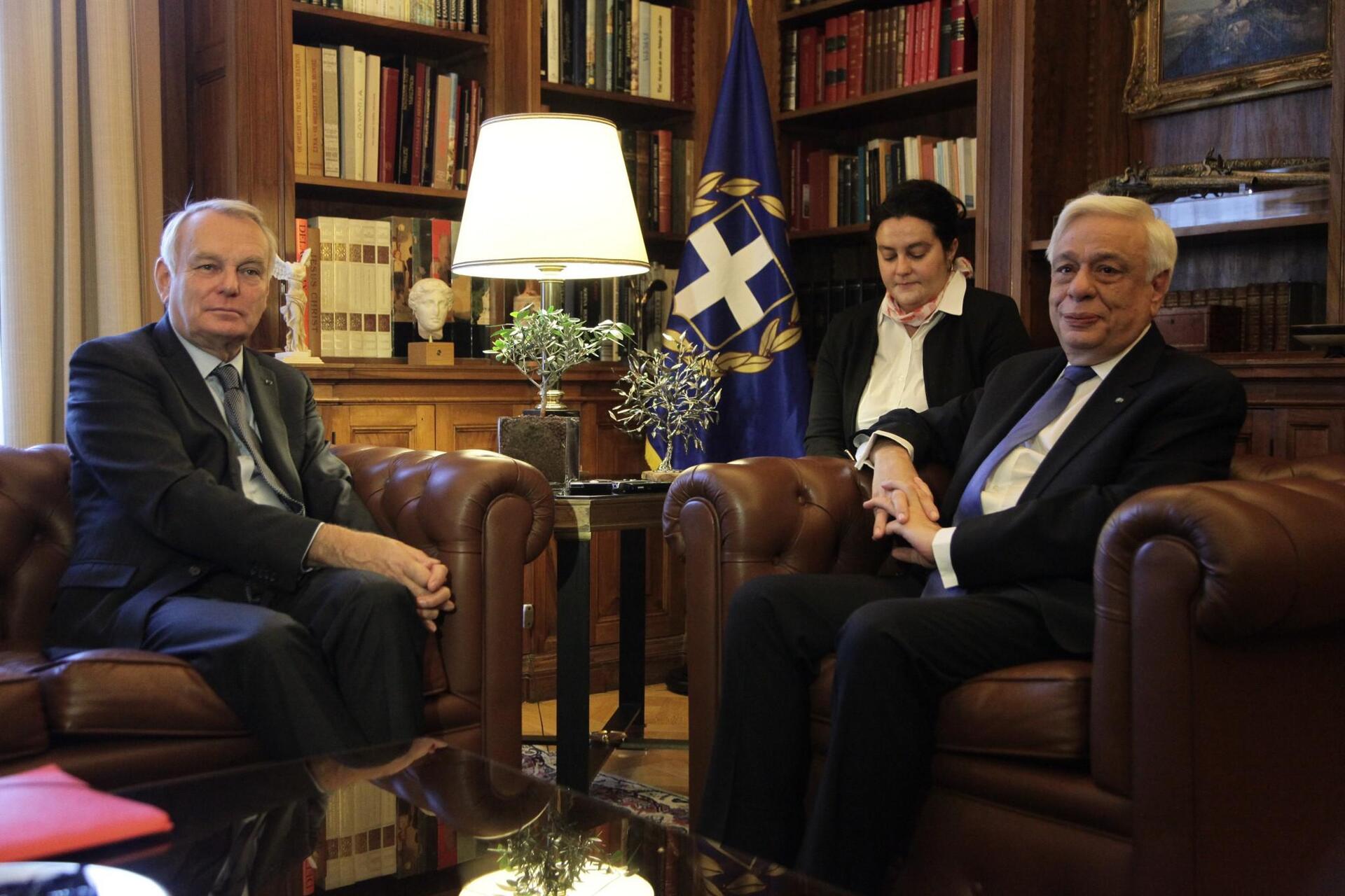 Από την πλευρά του ο κ. Ζαν Μαρκ Ερό χαιρέτισε τις πολύ θαρραλέες προσπάθειες και επιλογές του Ελληνικού λαού, ο οποίος στην μεγάλη του πλειοψηφία επέλεξε να παραμείνει στην Ευρώπη, να παραμείνει στο ενιαίο νόμισμα, κάτι το οποίο προϋποθέτει μεγάλες προσπάθειες.