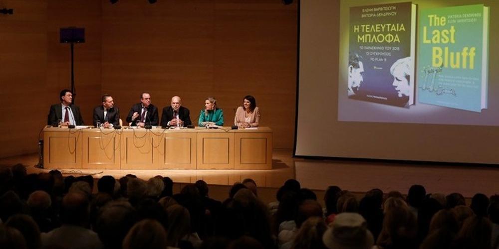 Η σημαντικότερη επίπτωση από αυτή την κατάσταση ήταν η αβεβαιότητα και η απώλεια της εμπιστοσύνης, που είχαμε καταφέρει να κερδίσουμε με πολύ κόπο ως τα τέλη του 2014. Ας μην ξεχνάμε ότι απωλέσθησαν 45 δισεκ. ευρώ περίπου καταθέσεων, επιβλήθηκαν έλεγχοι κεφαλαίων με σημαντικό πρόσθετο κόστος για την οικονομία, ενώ χρειάστηκαν νέα κεφάλαια για τις τράπεζες. Και αυτά μετά από δυο εκλογικές αναμετρήσεις, ένα δημοψήφισμα, και μακρόσυρτες διαπραγματεύσεις χωρίς στόχο και αποτελέσματα. Τα μηνύματα που εξέπεμπε τότε η χώρα ήταν αντιφατικά, οι μπλόφες συνεχείς και προκαλούσαν σύγχυση στους εταίρους της». «Στην «Τελευταία Μπλόφα» αυτό αποδεικνύεται πέραν κάθε αμφιβολίας».
