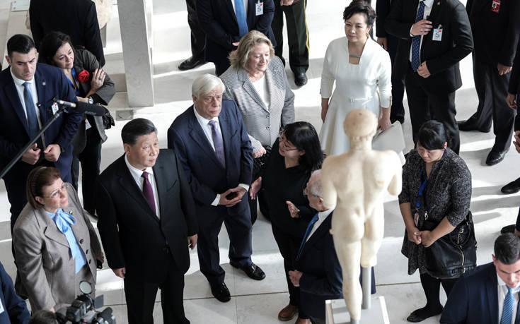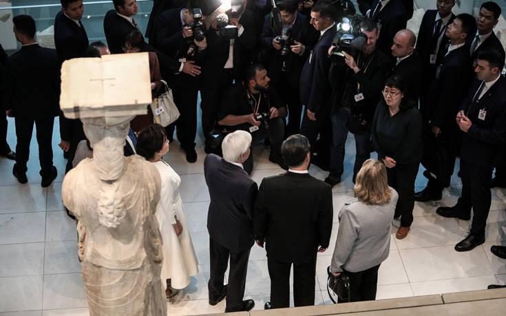 Τη δήλωση αυτή έκανε ο Πρόεδρος της Κίνας μπροστά από τις Καρυάτιδες στο Μουσείο της Ακρόπολης, στο οποίο ξεναγήθηκε για μία ώρα σήμερα. Στο σημείο αυτό, στο κέντρο του Μουσείου, όπως το χαρακτήρισε ο Έλληνας Πρόεδρος, ο κ. Παυλόπουλος ζήτησε την υποστήριξη του Κινέζου ομολόγου για την επιστροφή από το Βρετανικό Μουσείο, των Γλυπτών: «Η θέση των Γλυπτών είναι εδώ και όχι στο βρετανικό μουσείο. Τα κρατάνε παράνομα. Ζητάμε την υποστήριξή σας» είπε.