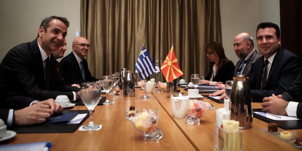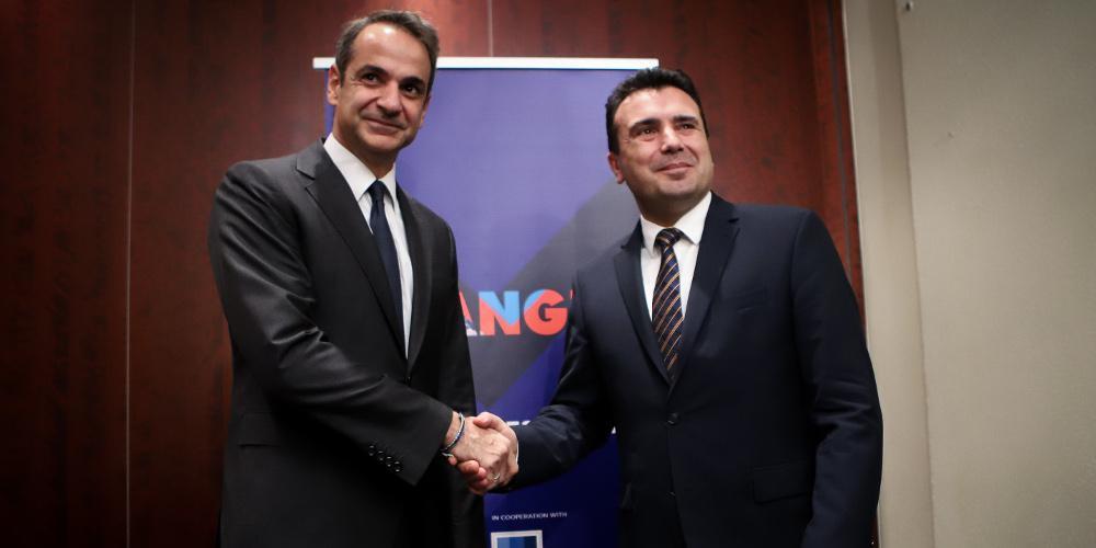 Ο κ. Μητσοτάκης, επανέλαβε την κριτική του στη συμφωνία των Πρεσπών, τόνισε όμως ότι από τη στιγμή που δεσμεύει τις δύο χώρες, είναι προϋπόθεση για την ευρωπαϊκή πορεία, πρέπει να εφαρμοστεί και να αποφευχθούν ενέργειες που συντηρούν την ένταση. Οι δυο Πρωθυπουργοί συμφώνησαν πως η εμπέδωση των σχέσεων καλής γειτονίας καθώς και η περιφερειακή συνεργασία παραμένουν ουσιώδη κριτήρια για όλα τα στάδια της ενταξιακής διαδικασίας, αλλά και για την ενίσχυση των διμερών μας σχέσεων.