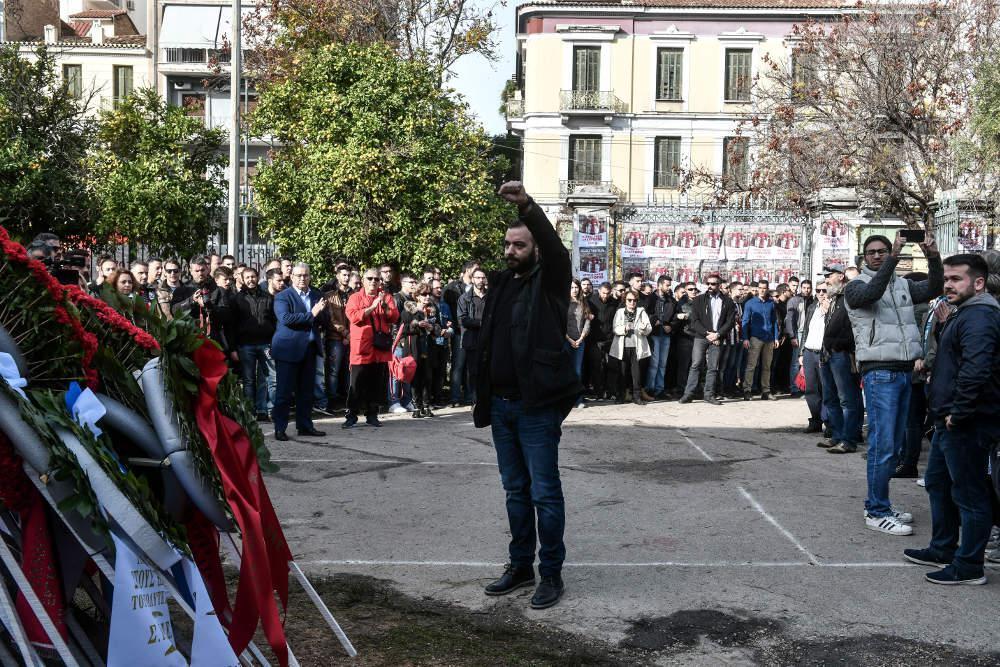 «Τα μηνύματα του Πολυτεχνείου είναι επίκαιρα και σήμερα, στον αγώνα ενάντια στην αντιλαϊκή πολιτική της φτώχειας, της ανεργίας, της υποβάθμισης της παιδείας, ενάντια στους ιμπεριαλιστικούς σχεδιασμούς των Αμερικανών, του ΝΑΤΟ, της ΕΕ στην περιοχή, ενάντια στην τρομοκρατία, την αστυνομική βία, τον κρατικό αυταρχισμό και την καταστολή. Συνεχίζουμε στα μηνύματα που δίνουν οι αγωνιστές του Πολυτεχνείου, η εξέγερση του Πολυτεχνείου, πιο δυναμικά, πιο μαζικά, με αισιοδοξία, για την τελική νίκη του λαού και της νεολαίας» δήλωσε ο ΓΓ της ΚΕ του ΚΚΕ, Δημήτρης Κουτσούμπας μετά την κατάθεση στεφάνου στον χώρο του Πολυτεχνείου.