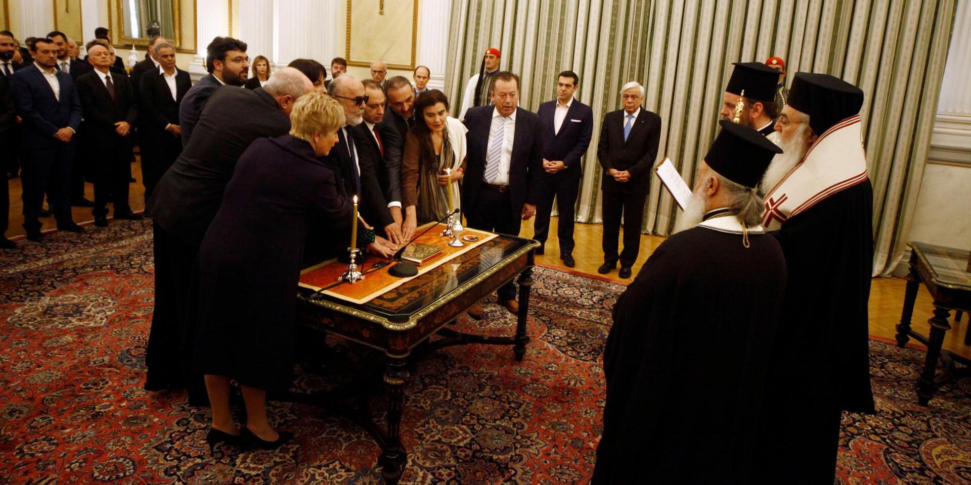 Συγκεκριμένα στο Ευαγγέλιο ορκίστηκαν οι Παναγιώτης Κουρουμπλής, Χρήστος Σπίρτζης, Γιώργος Βασιλειάδης, Λυδία Κονιόρδου Τέρενς Κουίκ, Μαρία Κόλλια Τσαρουχά, Βασίλης Κόκκαλης, Νίκος Μαυραγάνης, Κώστας Ζουράρις, Ελενα Κουντουρά.