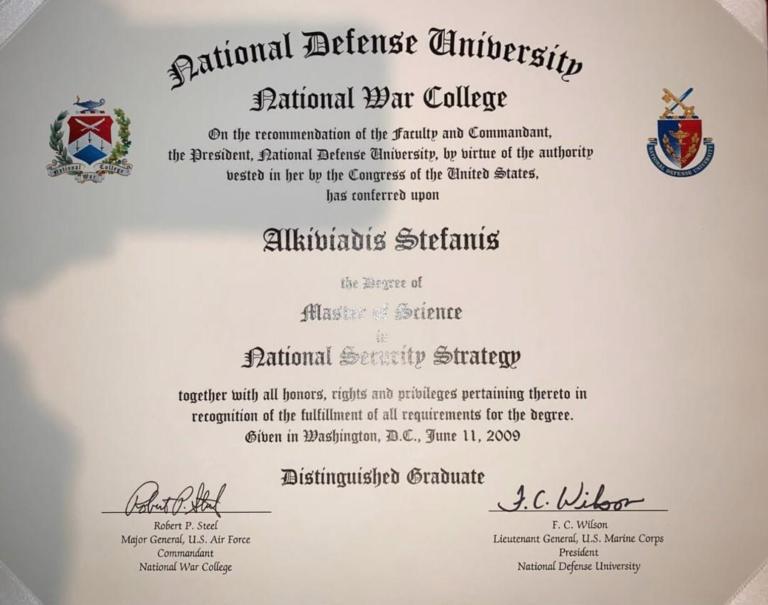 «Η λάσπη και οι αθλιότητες δεν με αγγίζουν, ούτε με πτοούν την ώρα που χειρίζομαι κρίσιμα για την πατρίδα μας θέματα. Και για τους εκ του πονηρού ερωτώντες, ιδού τα πτυχία μου». Ο κ. Στεφανής προσθέτει: «Σε ό,τι αφορά στο πρώτο, ήταν ομαδικό πρόγραμμα σπουδών του ΥΠΕΘΑ για τη Διαχείριση Κρίσεων. Σε ό,τι αφορά στο δεύτερο, ήμουν ο μοναδικός Έλληνας Αξιωματικός τη χρονιά 2008-2009 λόγω του ότι αρίστευσα στη Σχολή Εθνικής Άμυνας, αποφοιτώντας πρώτος και σύμφωνα με τις διαδικασίες, ως επιβράβευση και πληρώντας όλα τα υπόλοιπα στοιχεία επιλέχθηκα από το Συμβούλιο. Κατά τις εκεί σπουδές μου, εκτός της Ακαδημαϊκής μου αριστείας, ήμουν ο Πρόεδρος της επιτροπής Ηθικού του Πανεπιστημίου. Ολοκλήρωσα τις σπουδές μου ως Διακεκριμένος Απόφοιτος και βραβεύτηκα από το Γενικό Επιτελείο Στρατού».