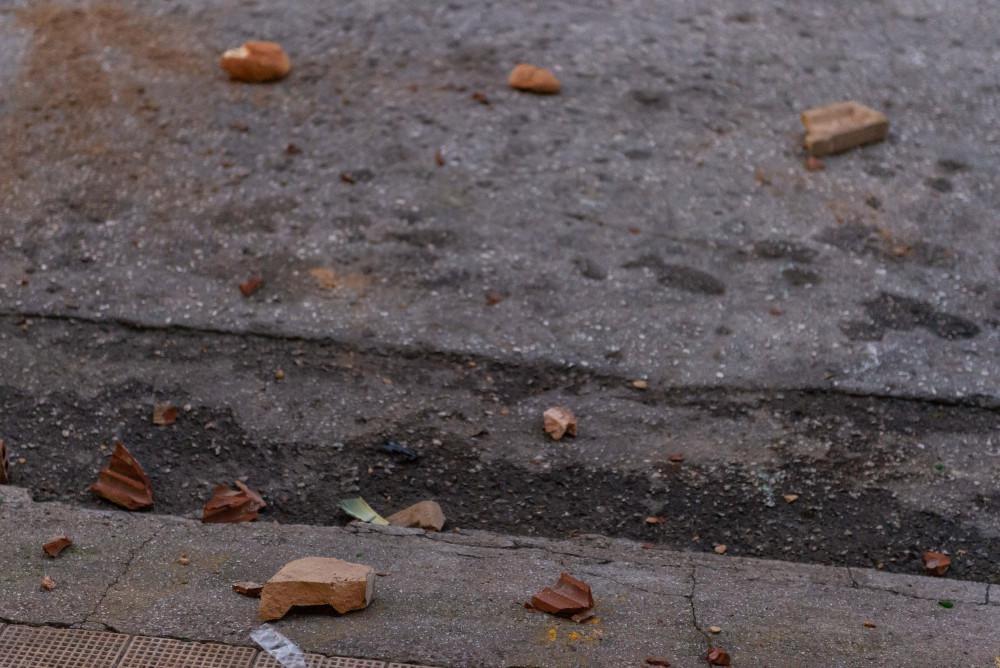 4. Στην ταράτσα, χρησιμοποιούμε πέτρες, μπογιά, πυροσβεστήρες στους μπάτσους