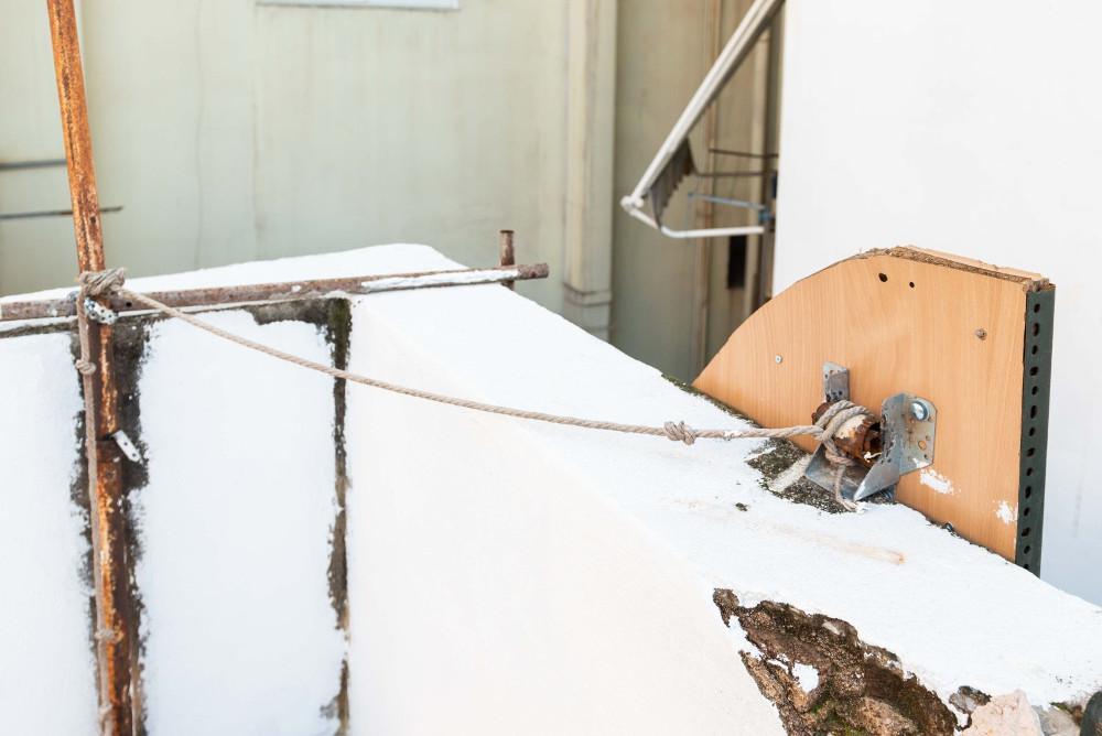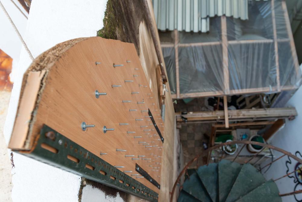 Σημειώνεται ότι, στη μεταλλική σκάλα που οδηγεί από το κτίριο της κατάληψης στην ταράτσα, είχε προσαρμοστεί ειδική κατασκευή με καρφιά – βίδες, για να αποκλείεται η πρόσβαση στην ταράτσα. Η κατασκευή αυτή είναι πραγματικά παγίδα θανάτου, καθώς λειτουργεί με μηχανισμό καταπέλτη, ικανού να προκαλέσει ακόμα και θάνατο από τα καρφιά – βίδες που προεξέχουν περισσότερο από δέκα πόντους, τα οποία όπως θα δείτε πέφτουν με δύναμη με την ενεργοποίηση του μηχανισμού.