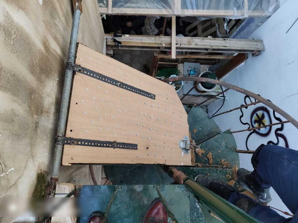 Σημειώνεται ότι κατά την επέμβαση των αστυνομικών δυνάμεων έγινε χρήση της κατασκευής αυτής. Επισημαίνεται ακόμα ότι πίσω από τις πόρτες είχαν εγκατασταθεί ειδικοί μεταλλικοί σιδηροδοκοί για να αποτρέπουν την είσοδο ατόμων στον χώρο.