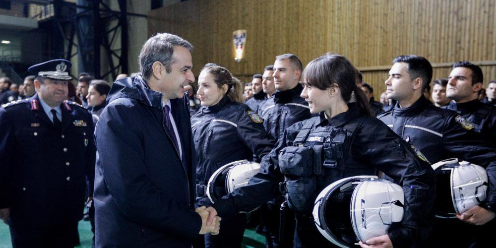 Η εκπαίδευση των νέων ένστολων ολοκληρώθηκε εντός του χρονοδιαγράμματος που είχε θέσει η κυβέρνηση, τόνισε ο Κυρ. Μητσοτάκης, στο πλαίσιο της δέσμευσης για ταχεία ενίσχυση της Ελληνικής Αστυνομίας με 1.500 στελέχη. Η υλικοτεχνική υποδομή της ΕΛ.ΑΣ. ενισχύθηκε παράλληλα με 450 νέα περιπολικά και μοτοσυκλέτες, 3.000 αλεξίσφαιρα γιλέκα, 500 ασυρμάτους, 3.000 νέες εξαρτήσεις και άλλο υλικό. Η τροφοδοσία των αστυνομικών με νέο υλικό θα συνεχιστεί, καθώς έχει δρομολογηθεί η απόκτηση 700 νέων οχημάτων, 11.000 αλεξίσφαιρων γιλέκων, 3.500 ασυρμάτων, 1.200 στολών επιχειρήσεων και 12 drones.