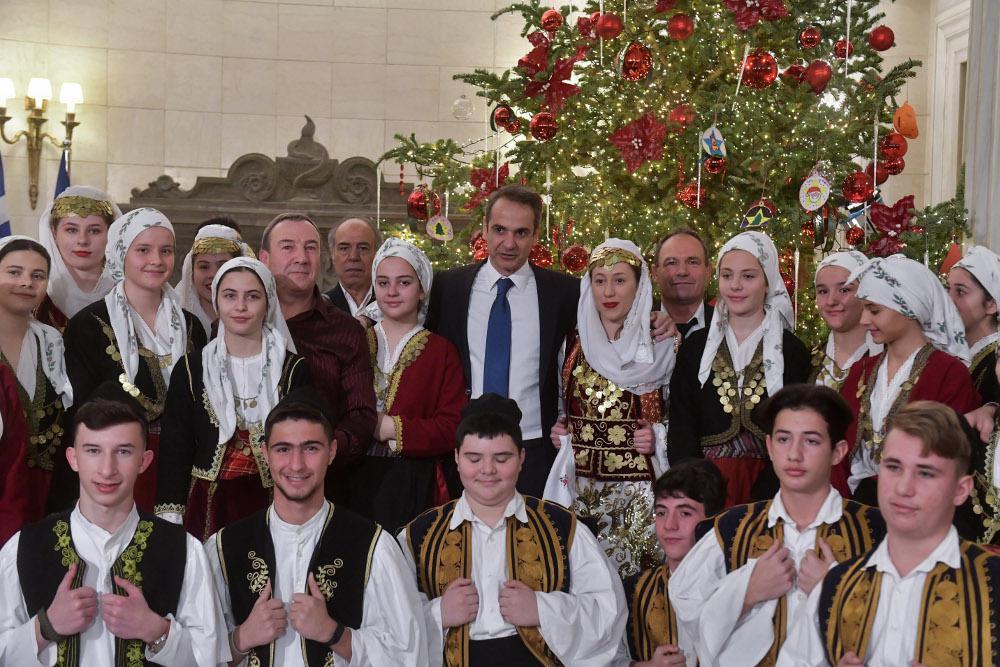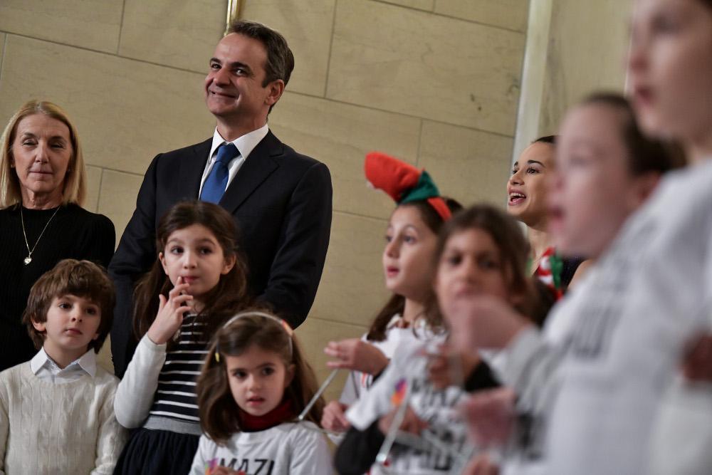 Μικρούς και μεγάλους φίλους υποδέχθηκε ο Κυριάκος Μητσοτάκης στο Μέγαρο Μαξίμου για να αποχαιρετήσουν με κάλαντα το 2019 το πρωί της Τρίτης.