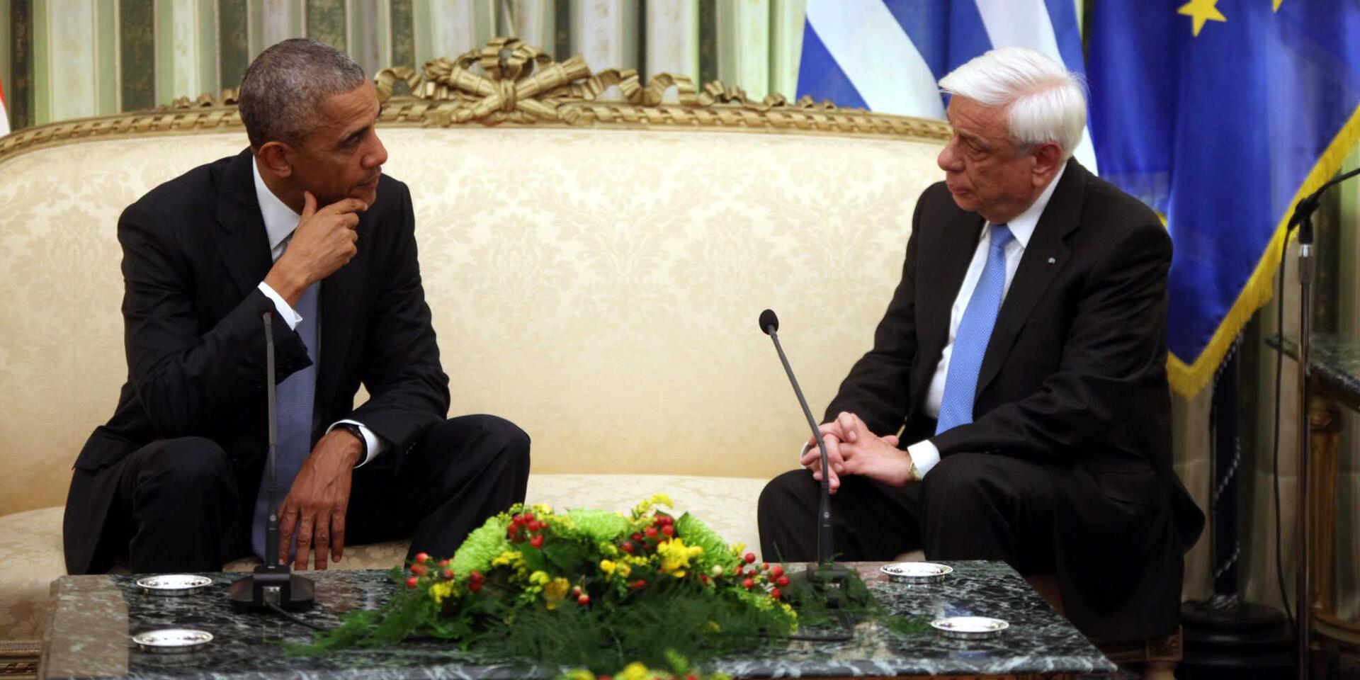 «Κύριε πρόεδρε σας καλωσορίζω και σας υποδέχομαι ως τον πρόεδρο της μεγάλης και φίλης χώρας ο οποίος διακρίθηκε για την υπεράσπιση του ανθρώπου, της δημοκρατίας και της δικαιοσύνης. Αυτά απεικονίζουν το μέγεθος της παγκόσμιας ακτινοβολίας σας» ανέφερε ο Πρόεδρος της Δημοκρατίας Προκόπης Παυλόπουλος κατά τον σύντομο διάλογο του με τον αμερικανό πρόεδρο Μπαράκ Ομπάμα μπροστά στις κάμερες.