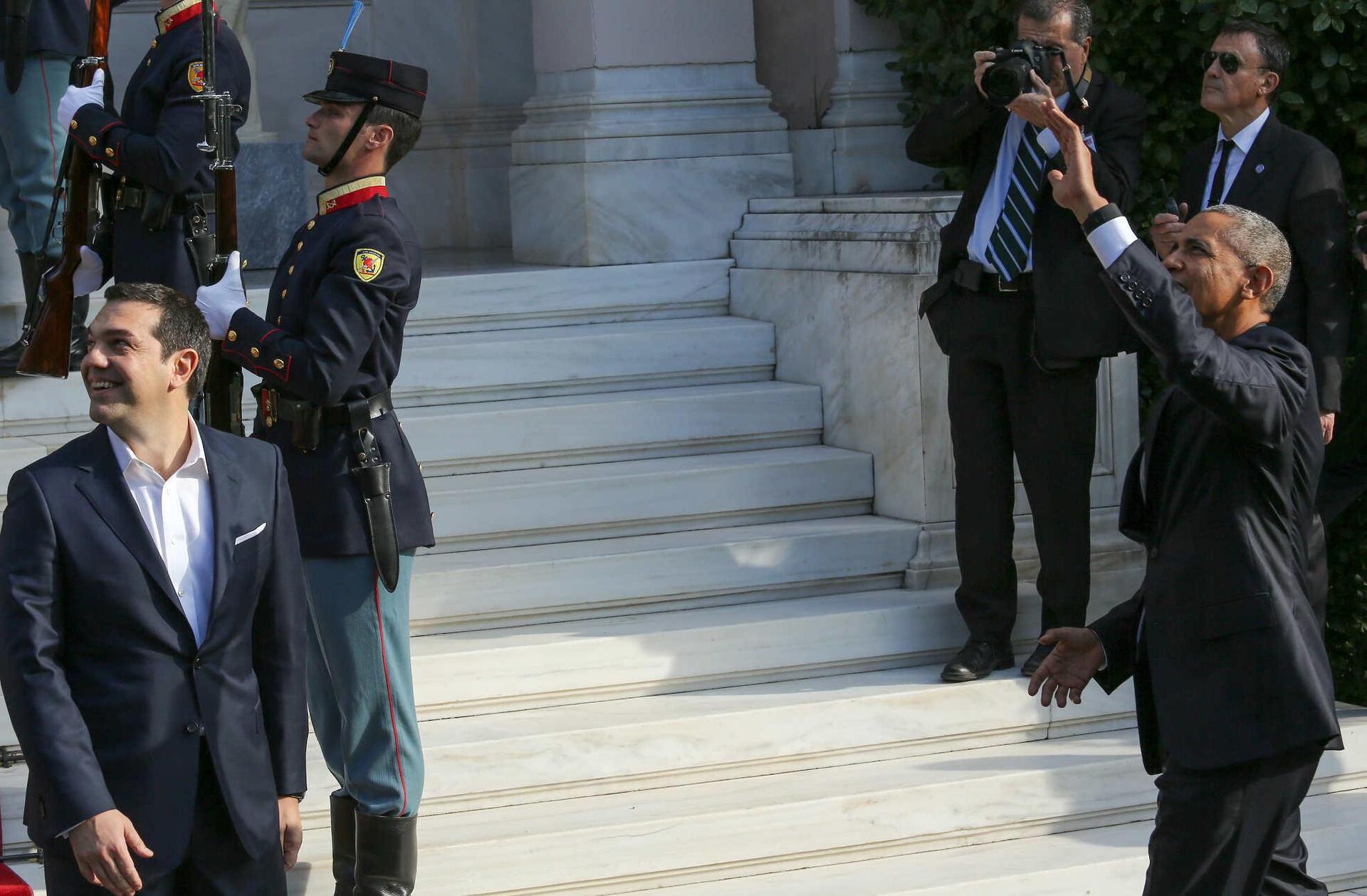 Χαρακτηριστικό είναι το περιστατικό που συνέβη μόλις έφτασε στο Μέγαρο Μαξίμου. Ο Μπαράκ Ομπάμπα χαιρετά χαμογελαστός Αθηναίους που τον καλωσορίζουν από μπαλκόνια.