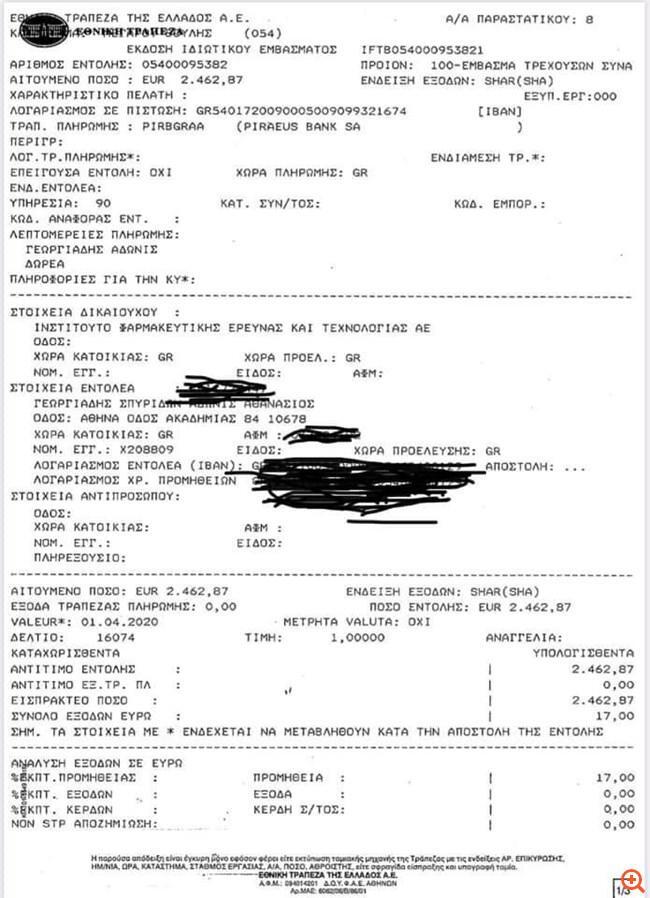 Η ανάρτηση του υπουργού συνοδεύεται από την απόδειξη της τράπεζας.