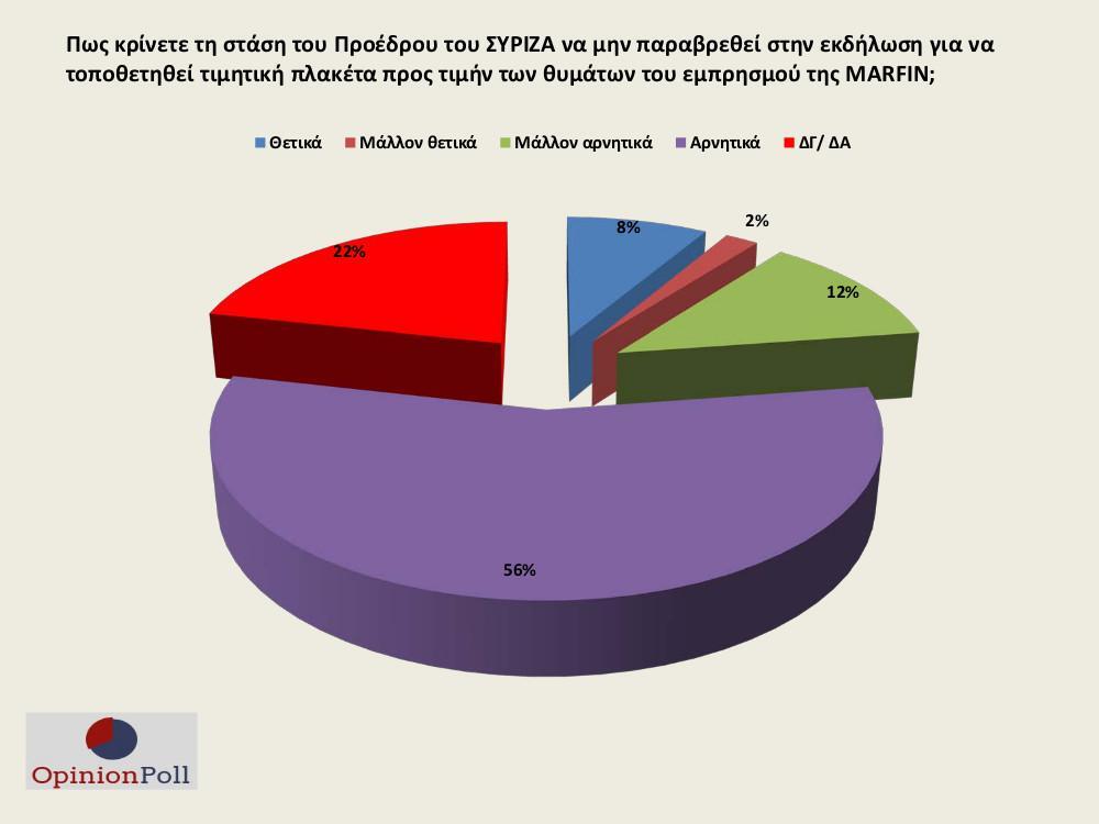 Η κυριαρχία αυτή εκφράζεται και στην ερώτηση για την καταλληλότητα ως πρωθυπουργός συγκεντρώνοντας το 52% των προτιμήσεων, 32.5% μπροστά από τις προτιμήσεις που συγκεντρώνει ο Αλέξης Τσίπρας με 19.5%. (Στο τέλος Μαρτίου οι προτιμήσεις ήταν 51% έναντι 20%, δηλαδή 31%). Ακόμα, το 68% των πολιτών κρίνει αρνητικά την απόφαση του κ. Τσίπρα να μην παρευρεθεί στην εκδήλωση για τα θύματα της «Marfin».