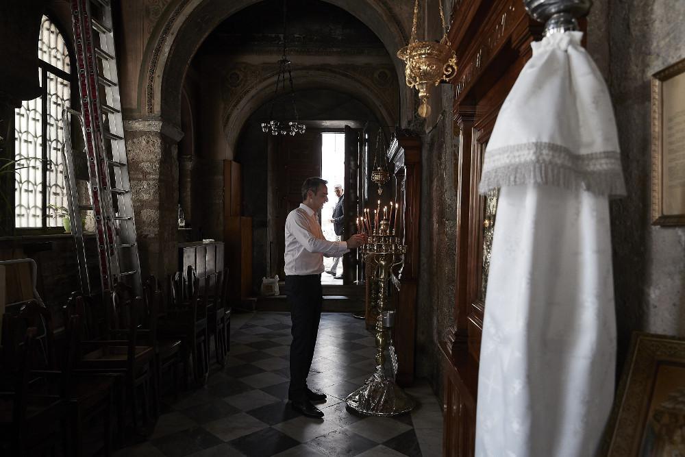 Ο Πρωθυπουργός σταμάτησε για λίγα λεπτά στην Εκκλησία της Παναγίας Καπνικαρέας, όπου άναψε ένα κερί, ενώ δεν παρέλειψε να ευχαριστήσει τους άνδρες της Αστυνομίας, οι οποίοι φροντίζουν για την ασφάλεια της περιοχής.