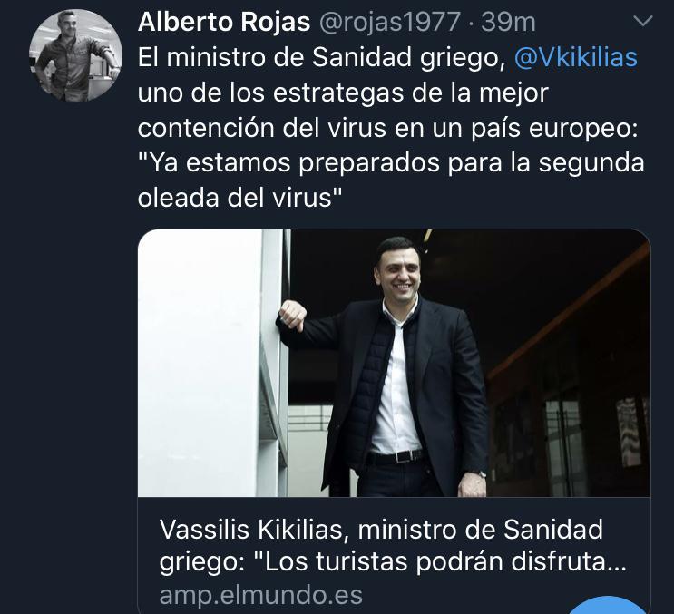 Ο Έλληνας υπουργός Υγείας αναφέρει επίσης: «την επιτυχία μας την πιστώνεται πρωτίστως το κορυφαίο ανθρώπινο δυναμικό που στελεχώνει το Εθνικό Σύστημα Υγείας. Οι Έλληνες έδειξαν ατομική ευθύνη με συλλογική συνείδηση. Τους αξίζουν πολλά συγχαρητήρια».