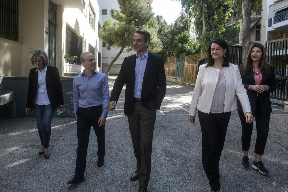 Στην είσοδο του σχολείου, όπου έφθασε πριν από λίγο, βρισκόταν ήδη η υπουργός Παιδείας Νίκη Κεραμέως που τον υποδέχθηκε μαζί με τη Διεύθυνση του Σχολείου.