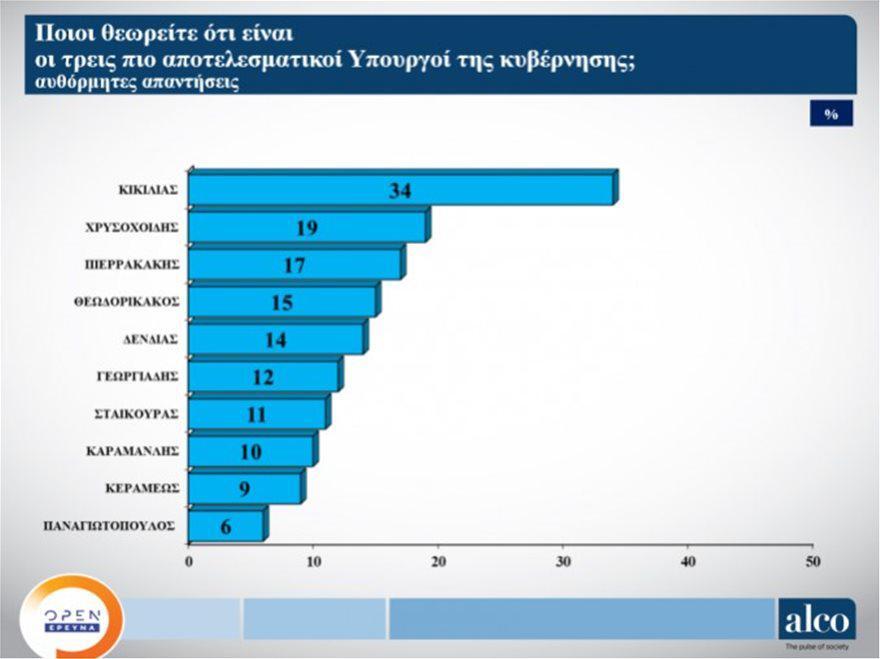 Στους αποτελεσματικότερους υπουργούς της κυβέρνησης οι πολίτες αναφέρουν πρώτο τον υπουργό Υγείας Βασίλη Κικίλια, ενώ τελευταίος στη λίστα είναι ο υπουργός.