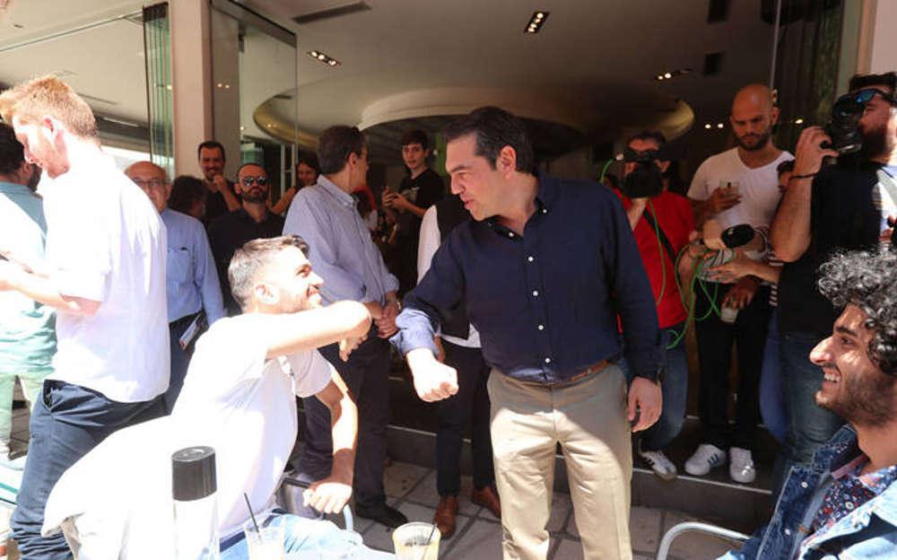 Από τη βόλτα του Αλέξη Τσίπρα δεν έλειψαν και οι φωτογραφίες με πολίτες αλλά και οι selfies.