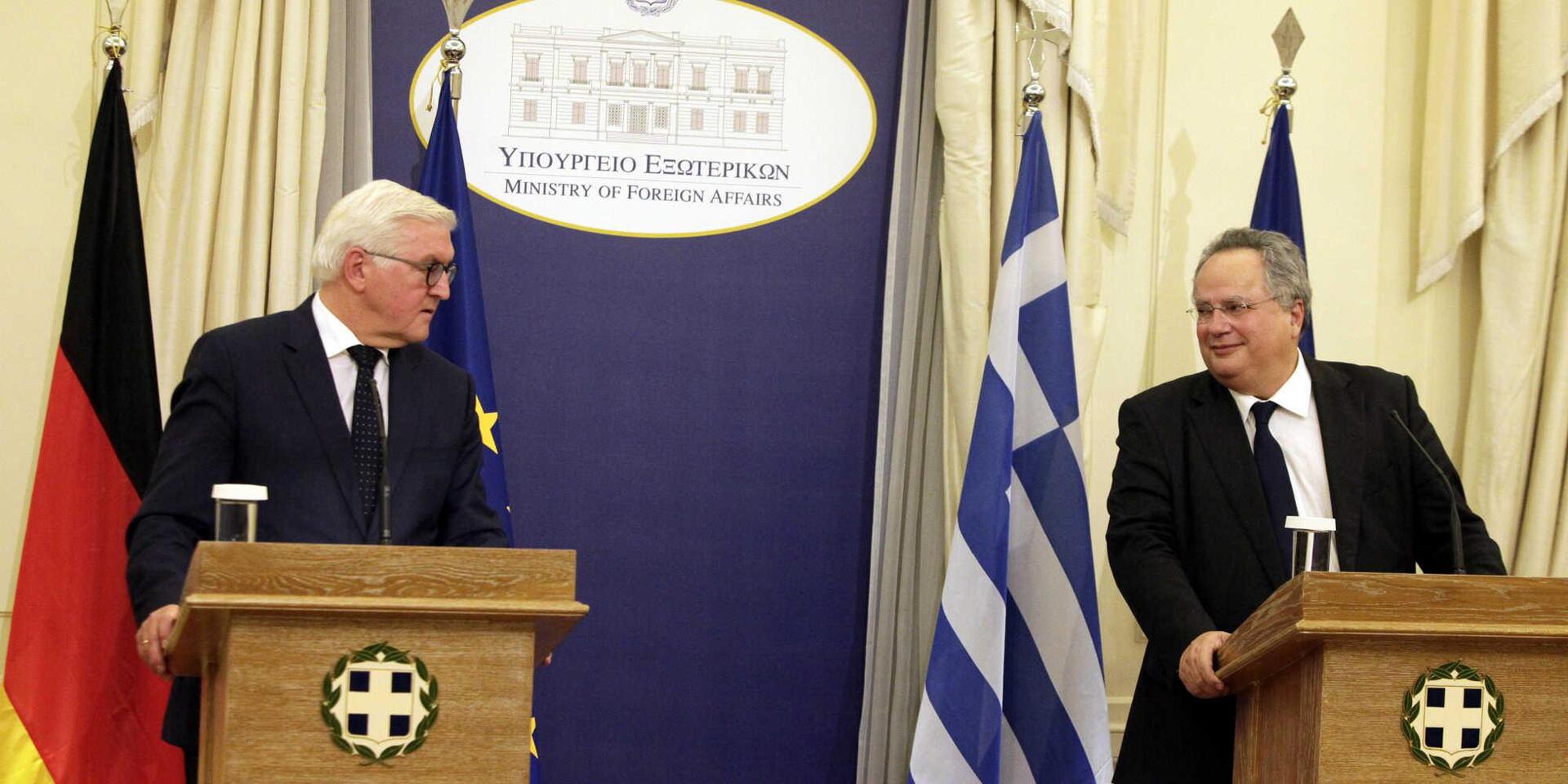 Αισιοδοξία εξέφρασαν οι δύο υπουργοί Εξωτερικών για το Κυπριακό, επισημαίνοντας ότι μία λύση θα είχε θετικές επιπτώσεις για το μέλλον όχι μόνο της Ελλάδας αλλά και όλης της ΕΕ. Βεβαίως μία λύση η οποία θα βασίζεται στο ευρωπαϊκό και διεθνές δίκαιο και δεν θα υπόκειται στις εγγυήσεις και στην παρουσία κατοχικού στρατού, όπως τόνισε ο κ. Κοτζιάς. «Μια συνεννόηση για το Κυπριακό θα αποτελέσει και ένα μήνυμα σταθεροποίησης της ΕΕ, κάτι που χρειαζόμαστε επιτακτικά» είπε ο κ. Σταϊνμάιερ, σημειώνοντας ότι αυτό θα ήταν κάτι περισσότερο από μια λύση μόνο για το Κυπριακό.