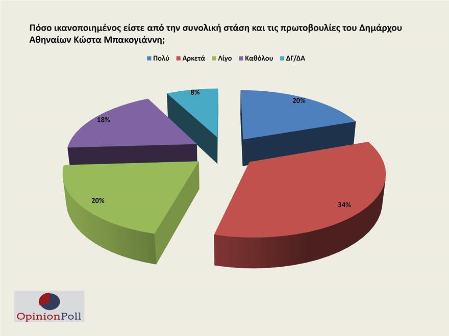 Ο Κώστας Μπακογιάννης έχει θετικές κρίσεις σε ποσοστό 54% και αρνητικές σε ποσοστό 38%, ενώ ο Γιώργος Πατούλης έχει θετικές γνώμες 29% και αρνητικές 45%.