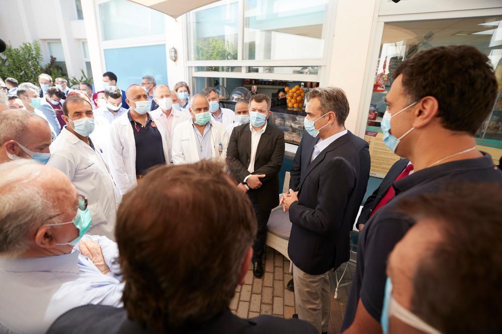 Ο Κυριάκος Μητσοτάκης τόνισε ότι είναι ενήμερος για τα ζητήματα που αφορούν το νοσοκομείο γνωρίζοντας ότι έχουν επιλυθεί εκκρεμότητες του παρελθόντος ενώ ευχαρίστησε το προσωπικό προσθέτοντας πως είναι ιδιαίτερα ικανοποιημένος από τον τρόπο λειτουργίας του νοσοκομείου. «Είναι ένα νοσοκομείο στολίδι -όχι μόνο για τις υποδομές του τις οποίες χαίρομαι να βλέπω και ο ίδιος. Είχα δει μόνο τις σχετικές φωτογραφίες- αλλά είναι στολίδι γιατί εσείς το κάνετε στολίδι. Ένα νοσοκομείο ντουβάρια, χωρίς γιατρούς και νοσηλευτές, δεν λέει πολλά πράγματα και νομίζω ότι τώρα πια έχουμε φτάσει στο σημείο να μπορούμε να πούμε ότι έχουμε ένα πλήρως στελεχωμένο νοσοκομείο και όπου υπάρχουν ακόμα αδυναμίες, ατέλειες, ελλείψεις, εδώ πέρα είμαστε να επιλύσουμε και αυτά τα προβλήματα», ανέφερε.