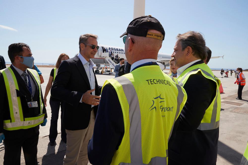 Συζητήθηκε, επίσης, η προσπάθεια της κυβέρνησης να απομακρύνει νομικές αγκυλώσεις που εμποδίζουν την απρόσκοπτη χρήση πτητικών μέσων για αεροδιακομιδές. «Έχουμε μπροστά μας ένα κρίσιμο καλοκαίρι και η πρόθεσή μας είναι να υποδεχθούμε επισκέπτες χωρίς να κάνουμε καμία απολύτως έκπτωση στην ασφάλεια αλλά και στην ασφάλεια προφανώς του πληθυσμού και βεβαίως και στην ασφάλεια των εργαζομένων στο Εθνικό Σύστημα Υγείας. Έχουμε κάνει την καλύτερη δυνατή προετοιμασία -όπως καλά γνωρίζετε- είμαι σίγουρος ότι όλα τελικά θα πάνε καλά αλλά είναι πάρα πολύ σημαντικό να εκπέμψουμε αυτήν την εικόνα ασφάλειας και οργάνωσης και στους επισκέπτες οι οποίοι θα έρθουν στην Ελλάδα το καλοκαίρι, όπως την εκπέμψαμε όλους αυτούς τους μήνες που αντιμετωπίσαμε, πιστεύω, με μεγάλη επιτυχία το πρώτο κύμα της πανδημίας», σημείωσε ο πρωθυπουργός κατά τον χαιρετισμό του στο προσωπικό του νοσοκομείου.