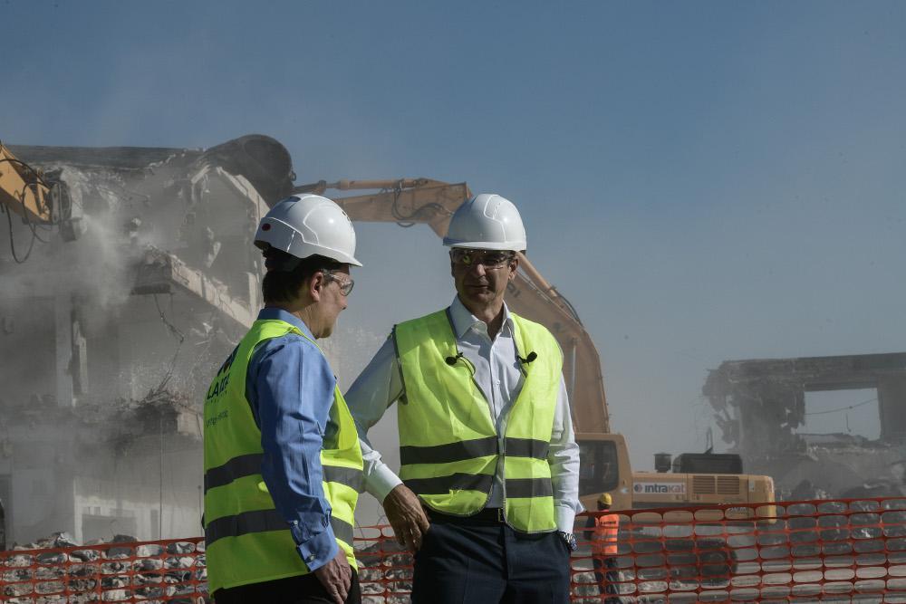 Αρχικά ο πρωθυπουργός ανέφερε: «Πράγματι σήμερα είναι μια συμβολική ημέρα. Γκρεμίζοντας τα παλιά κτίρια, βάζουμε τα θεμέλια για το Νέο Ελληνικό, το μεγαλύτερο παράκτιο πάρκο στη Μεσόγειο, αλλά ταυτόχρονα ο χώρος αυτός θα γίνει κυψέλη ανάπτυξης. Θα είναι ένα έργο σύγχρονο, οικολογικό, που θα συμβολίζει τη νέα Ελλάδα.