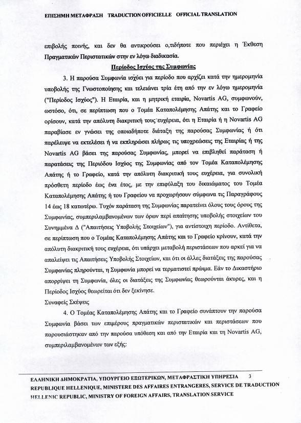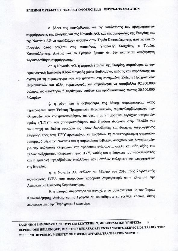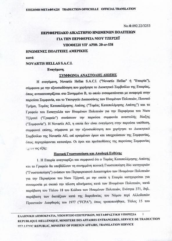 Η επίσημη μετάφραση της μεταφραστικής υπηρεσίας του υπουργείου Εξωτερικών επιβεβαιώνει πως ο συμβιβασμός 345 εκατ. δολαρίων της Novartis με τις ΗΠΑ δεν αφορούσε μόνο σε γιατρούς, όπως ψευδώς ισχυρίζεται η ΝΔ, αλλά σε πρακτικές διαφθοράς για τον επηρεασμό αποφάσεων της κυβέρνησης Σαμαρά την περίοδο 2012-2015.