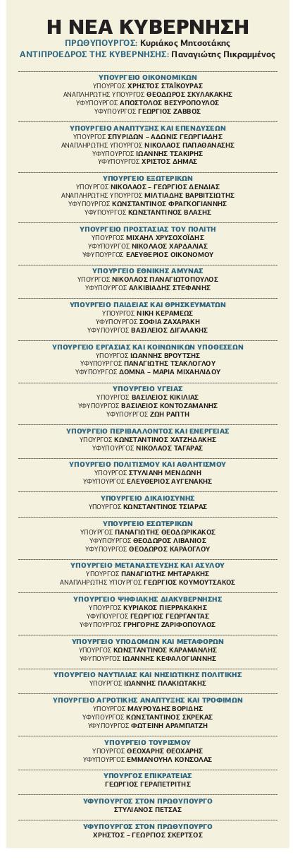 «Οι λόγοι των πρωτοβουλιών είναι προφανείς: Η αποτελεσματική διαχείριση των αυξημένων κοινοτικών πόρων δίνουν ισχυρό ρόλο στα χαρτοφυλάκια Οικονομικών και Ανάπτυξης», τόνισε ο κυβερνητικός εκπρόσωπος Στέλιος Πέτσας, προσθέτοντας: «Οπως και η υγειονομική κρίση, ταυτόχρονα με το σχέδιο για ένα νέο ΕΣΥ, οδηγούν στην οργανωτική τόνωση του υπουργείου Υγείας. Ενώ είναι σαφές πως δεν θα μπορούσε να μη συμπληρωθεί το επιτελείο του υπουργείου Εργασίας, όταν κυβερνητική προτεραιότητα ήταν και είναι η απασχόληση και οι νέες θέσεις εργασίας. Σε ό,τι αφορά τον “χαρακτήρα” αυτών των βελτιωτικών κινήσεων, είναι σαφές ότι και σε αυτή την περίπτωση αποτυπώνεται η πάγια αντίληψη του Κυριάκου Μητσοτάκη: επιλογές προσώπων από τη Βουλή και από την κοινωνία. Διαφορετικών ηλικιών και εμπειρίας. Και με γνώμονα τις ικανότητες και τη διάθεση για προσφορά, ανεξάρτητα από ιδεολογικές καταβολές».
