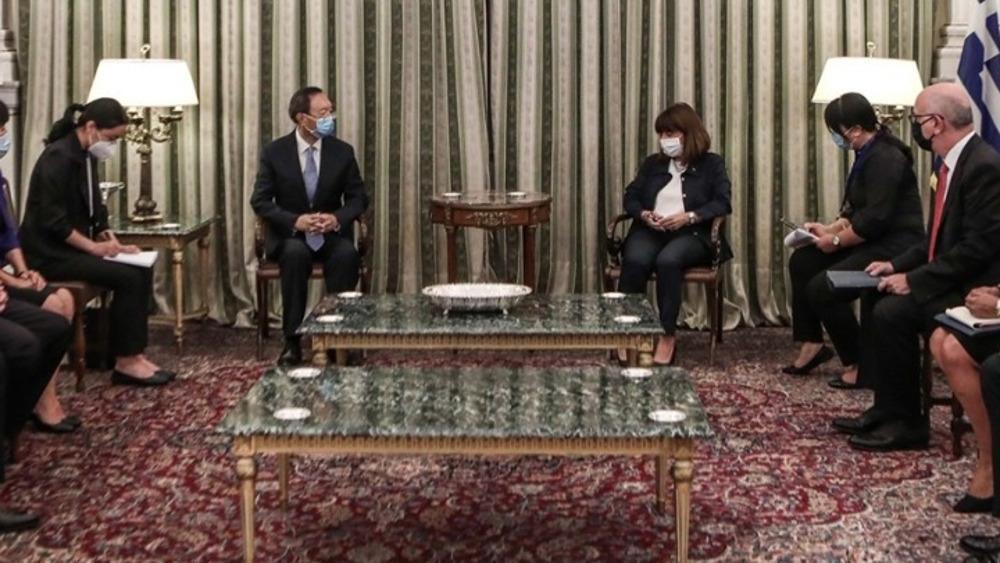 Η κυρία Σακελλαροπούλου τόνισε την επιθυμία και της ελληνικής πλευράς για περαιτέρω ενδυνάμωση των διμερών μας σχέσεων σε όλους τους τομείς. Επίσης ευχαρίστησε τον κύριο Γιάνγκ για την υποστήριξη που παρέσχε προς τη χώρα μας η Κίνα με την αποστολή υγειονομικού υλικού για τη διαχείριση της πανδημίας. Ο Κινέζος αξιωματούχος συνεχάρη την Ελλάδα για την αποτελεσματική αντιμετώπιση της υγειονομικής κρίσης και τόνισε ότι και οι δύο χώρες στηρίζουν την πολυμερή συνεργασία και τον ρόλο του Παγκόσμιου Οργανισμού Υγείας.