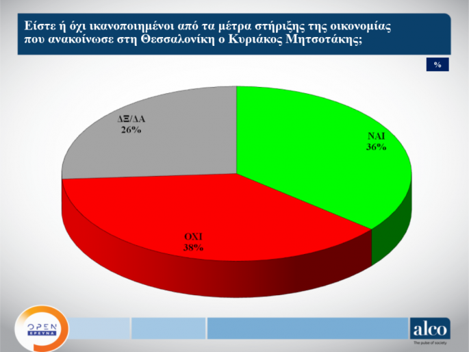 Για τα μέτρα στήριξης της οικονομίας το 38% ήθελε περισσότερα από τον Κυριάκο Μητσοτάκη ενώ το 36% συμφωνεί με αυτά που εξαγγέλθηκαν