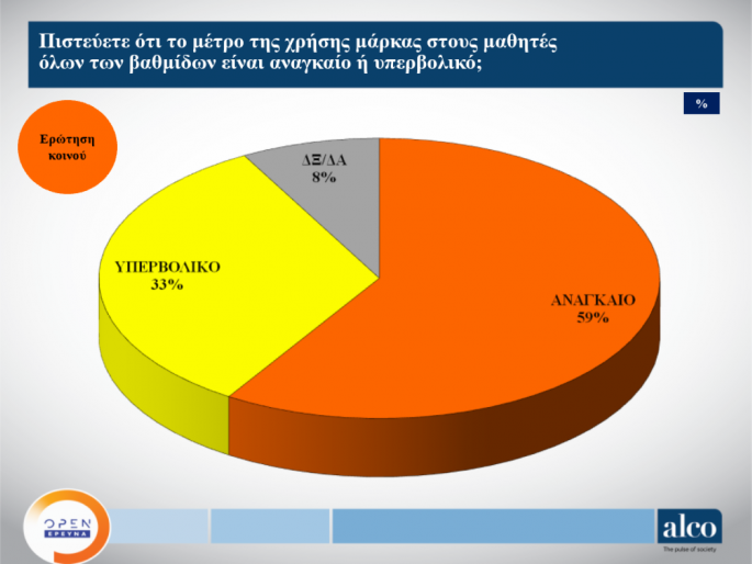 Για τις μάσκες στα σχολεία το 59% τις κρίνει αναγκαίες και το 33% υπερβολικό