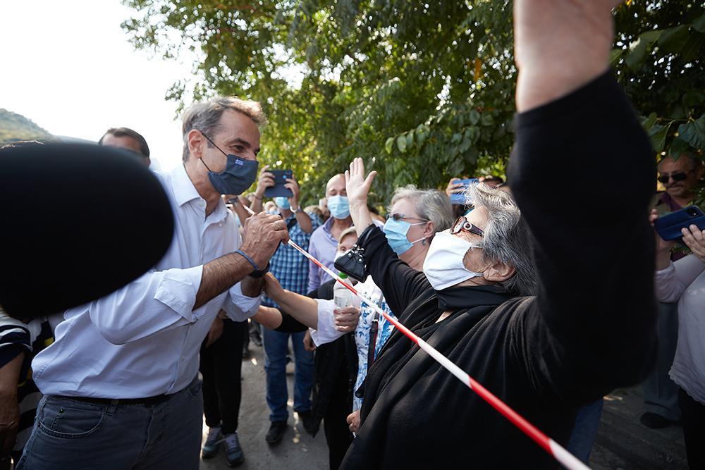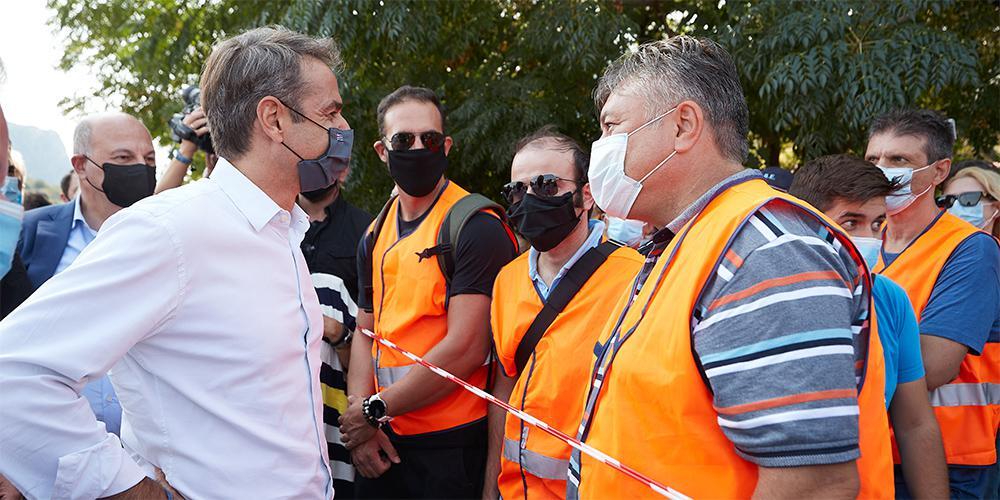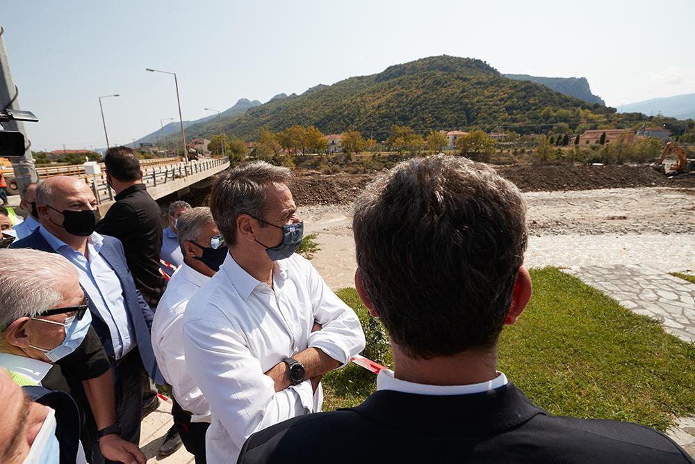 Μετά τη σύσκεψη ο πρωθυπουργός πέταξε με ελικόπτερο πάνω από τα σημεία όπου σημειώθηκαν μεγάλες καταστροφές και στη συνέχεια συνομίλησε με κατοίκους που βιώνουν δύσκολες στιγμές τα τελευταία εικοσιτετράωρα.