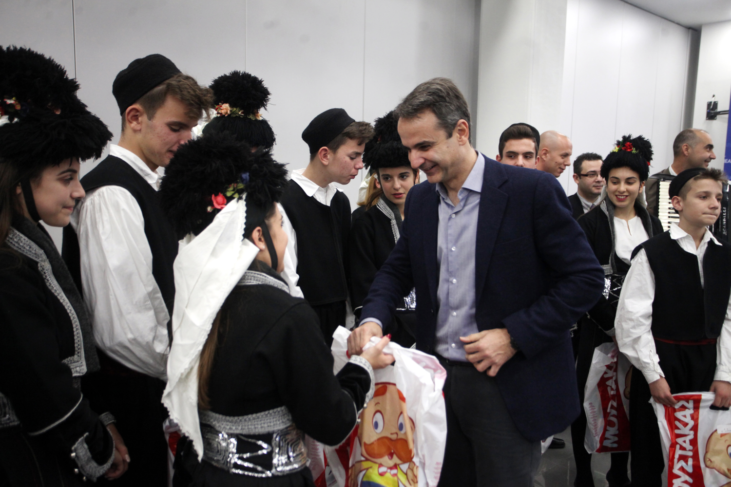 Ο Πρόεδρος της Νέας Δημοκρατίας Κυριάκος Μητσοτάκης άκουσε σήμερα, στα κεντρικά γραφεία του κόμματος, τα Χριστουγεννιάτικα κάλαντα.
