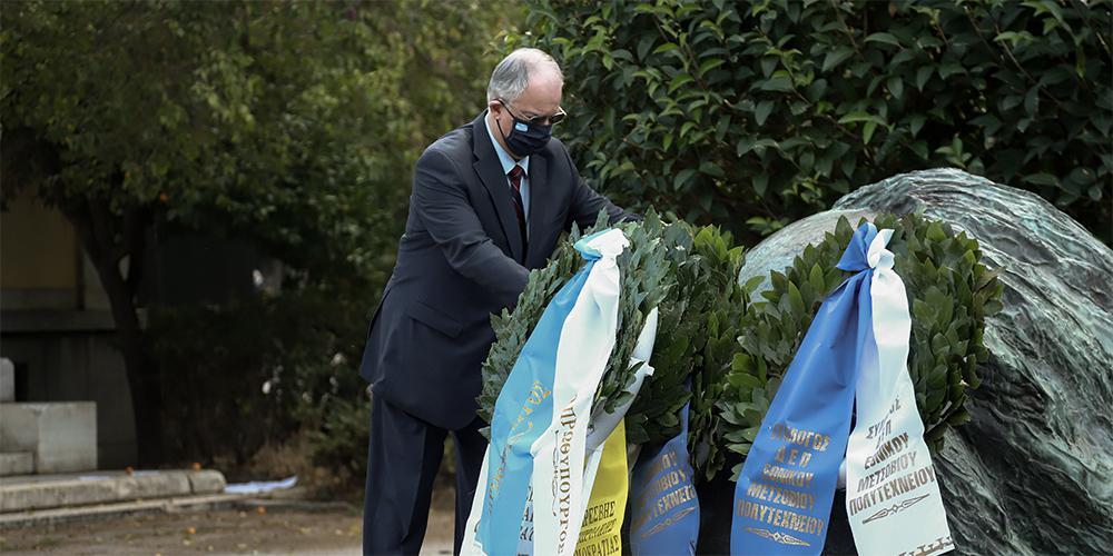 «Το Πολυτεχνείο, μέχρι το 1973, ήταν ένα παράδειγμα, μεταξύ άλλων, εθνικής ευποιίας. Εδώ και 47 χρόνια, μετά τη 17 Νοέμβρη του ΄73, έγινε κι ένα κορυφαίο παράδειγμα δημοκρατικής ευποιίας, γιατί η εξέγερσή του συμβολίζει την κορυφαία πράξη αντιστάσεως του ελληνικού λαού και ιδίως της νεολαίας, κατά τη δικτατορίας.
