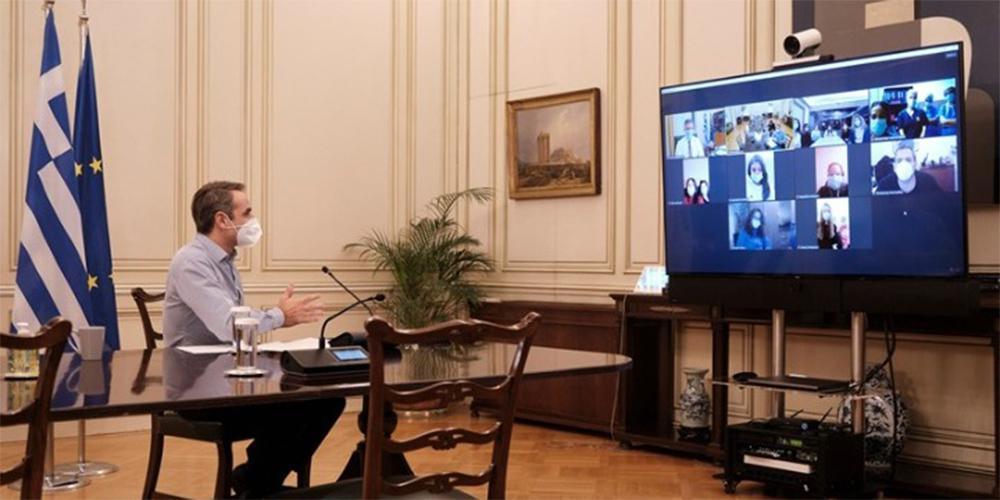 Ο κ.Μητσοτάκης είχε την ευκαιρία μέσω τηλεδιάσκεψης, να ευχαριστήσει τις 17 εθελόντριες νοσηλεύτριες και έναν εθελοντή νοσηλευτή, που ταξίδεψαν από την Κρήτη, την Αργολίδα και την Κομοτηνή και δίνουν αυτή τη στιγμή τη μάχη στα νοσοκομεία Ιπποκράτειο και ΑΧΕΠΑ της Θεσσαλονίκης, δίπλα σε ασθενείς με COVID-19.