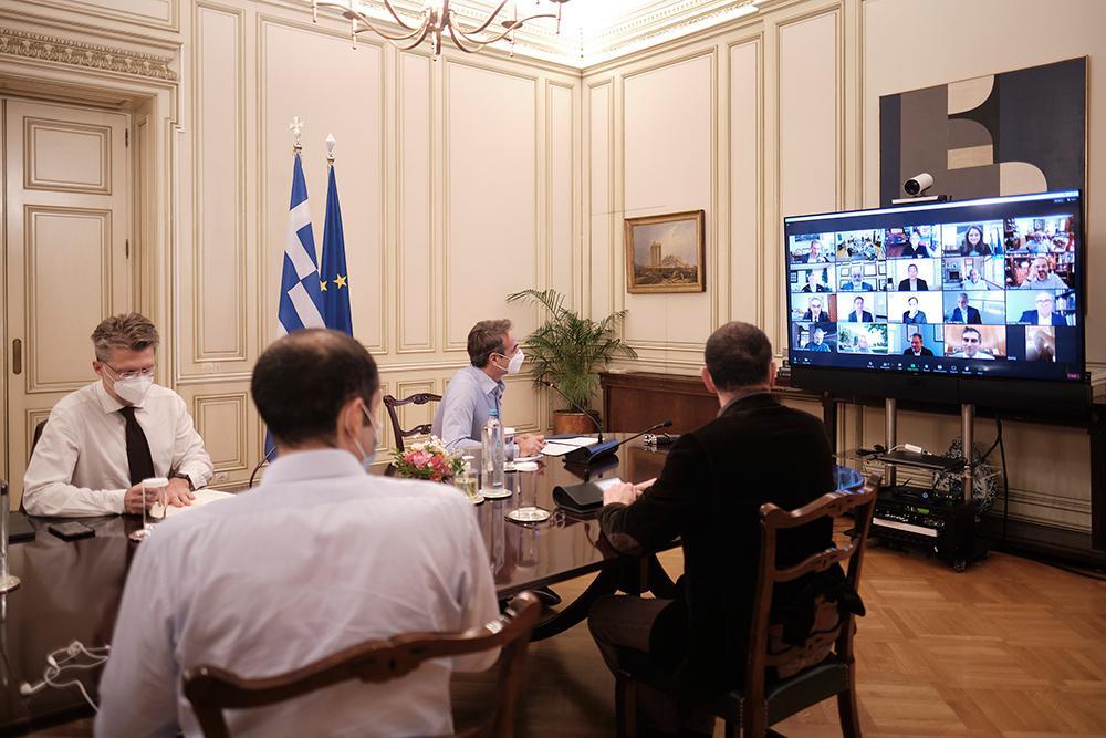 Στην αρχή της τηλεδιάσκεψης ο πρωθυπουργός τόνισε: «Έχουμε θέσει τα θεμέλια για ένα αναπτυξιακό μοντέλο το οποίο δεν βασίζεται απαραίτητα στα παραδοσιακά συγκριτικά πλεονεκτήματα που πάντοτε συσχετίζει κανείς με την Ελλάδα.