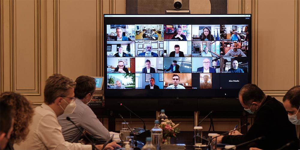 Στη τηλεδιάσκεψη έλαβαν μέρος ο Noubar Afeyan (πρόεδρος της Moderna, Διευθύνων Σύμβουλος Flagship Pioneering), ο Σπύρος Αρταβάνης-Τσάκωνας (Harvard Medical School, πρόεδρος του ΕΣΕΤΕΚ), o Άλμπερτ Μπουρλά (πρόεδρος και Διευθύνων Σύμβουλος της Pfizer), o Eric Cantor (Διευθυντής της Moelis & Company), ο Nicholas Galakatos (Global Head of Life Sciences στην Blackstone Life Sciences), ο Emil D. Kakkis (Διευθύνων Σύμβουλος της Ultragenyx Pharmaceutical), ο Costis Maglaras (Πρύτανης στο Columbia Business School), ο Peter R. Orszag (Διευθύνων Σύμβουλος επί Χρηματοπιστωτικών Συμβουλών στη Lazard), ο Sir Menelas Pangalos (Εκτελεστικός Αντιπρόεδρος AstraZeneca), ο Stelios Papadopoulos (πρόεδρος ΔΣ των Biogen, Exelixis, Regulus Therapeutics και συνιδρυτής της Eucrates Biomedical), ο Vangelis Vergetis (Διευθύνων Σύμβουλος Intelligencia και πρόεδρος Eucrates Biomedical), ο Michel Vounatsos (Διευθύνων Σύμβουλος της Biogen) και ο George Yancopoulos (πρόεδρος Regeneron Pharmaceuticals).