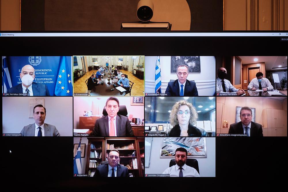 Στην τηλεδιάσκεψη έλαβαν μέρος ο Υπουργός Εξωτερικών, Νίκος Δένδιας, ο Υπουργός Επικρατείας και Ψηφιακής Διακυβέρνησης, Κυριάκος Πιερρακάκης, ο Υπουργός Επικρατείας, Γιώργος Γεραπετρίτης, ο Υφυπουργός Εξωτερικών αρμόδιος για τον Απόδημο Ελληνισμό, Κωνσταντίνος Βλάσης, ο Υφυπουργός παρά τω Πρωθυπουργώ αρμόδιος για το Συντονισμό του Κυβερνητικού Έργου, Άκης Σκέρτσος, ο Υφυπουργός παρά τω Πρωθυπουργώ και Κυβερνητικός Εκπρόσωπος, Στέλιος Πέτσας, ο Γενικός Γραμματέας Ψηφιακής Διακυβέρνησης και Απλούστευσης Διαδικασιών, Λεωνίδας Χριστόπουλος, ο Γενικός Γραμματέας Πληροφοριακών Συστημάτων Δημόσιας Διοίκησης Δημοσθένης Αναγνωστόπουλος, η Διευθύντρια του Διπλωματικού Γραφείου του Πρωθυπουργού, Ελένη Σουρανή, ο Πρέσβης της Ελλάδος στο Ηνωμένο Βασίλειο, Ιωάννης Ραπτάκης, ο Γενικός Πρόξενος της Ελλάδας στη Νέα Υόρκη, Κωνσταντίνος Κούτρας και ο Γενικός Πρόξενος της Ελλάδας στο Τορόντο, Βίκτωρ Μαλιγκούδης.