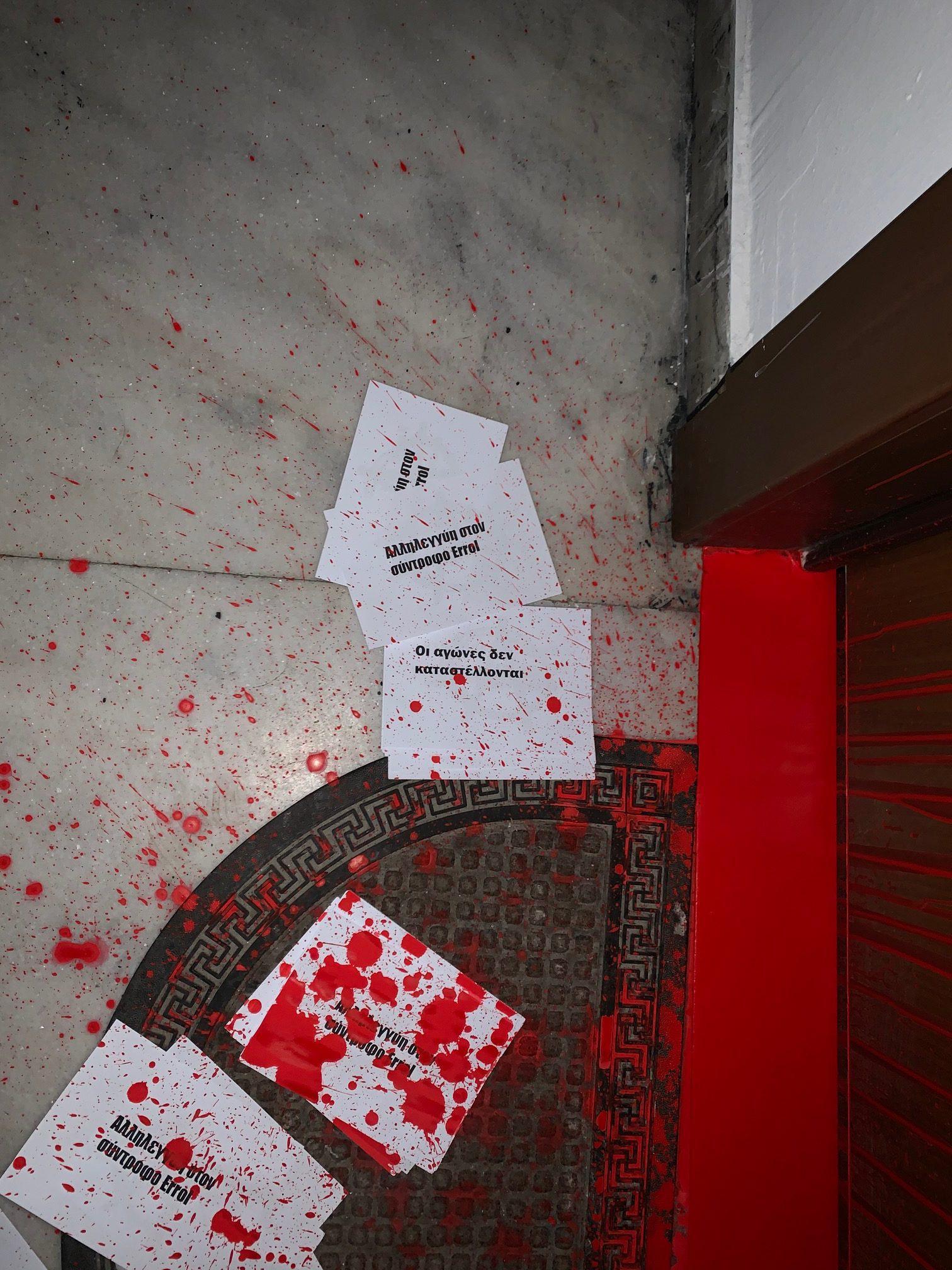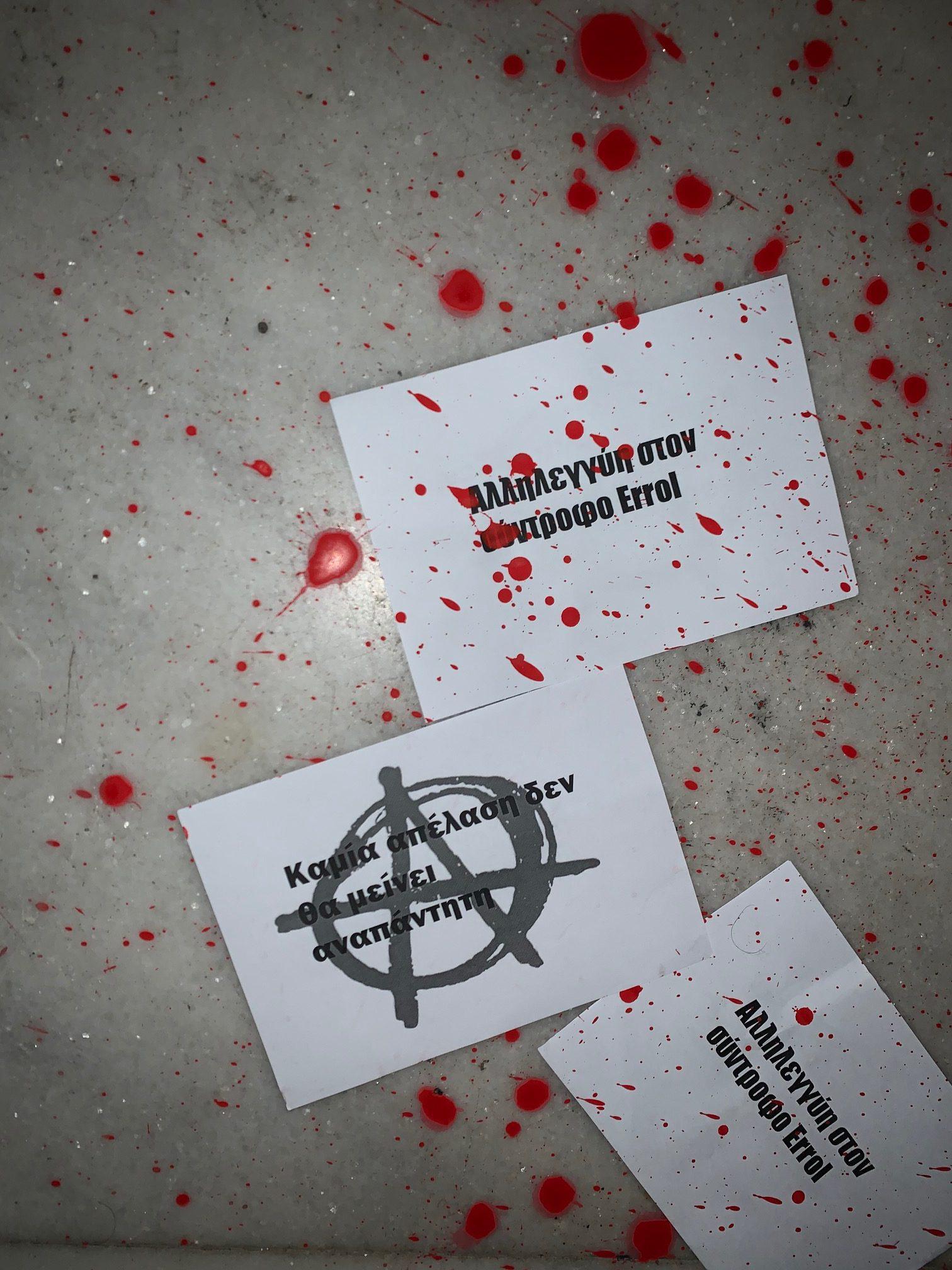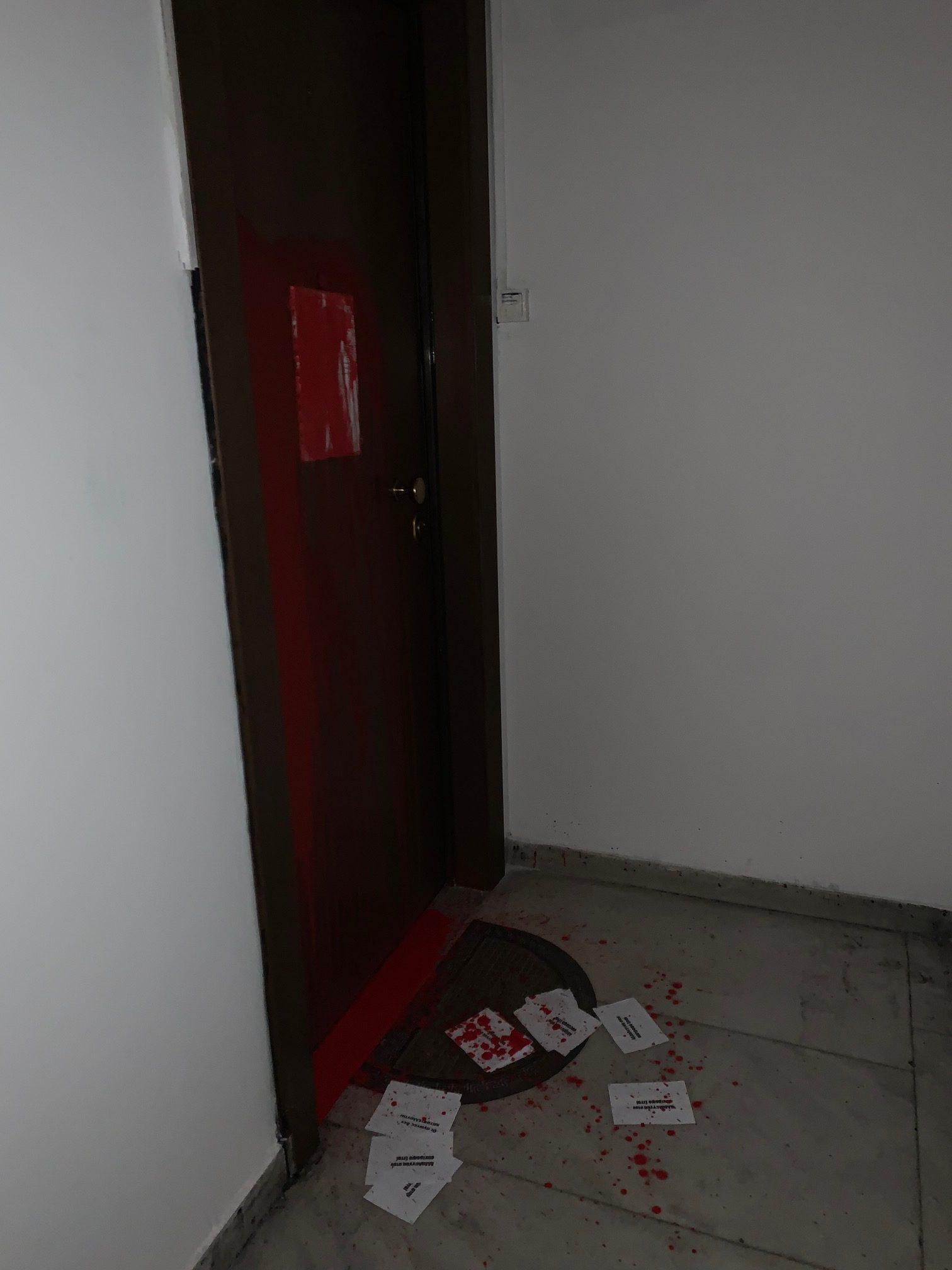 Συγκεκριμένα, οι δράστες έριξαν κόκκινη μπογιά στην είσοδο του πολιτικού γραφείου του βουλευτή αλλά και τρικάκια που έφεραν το σήμα των αναρχικών.
