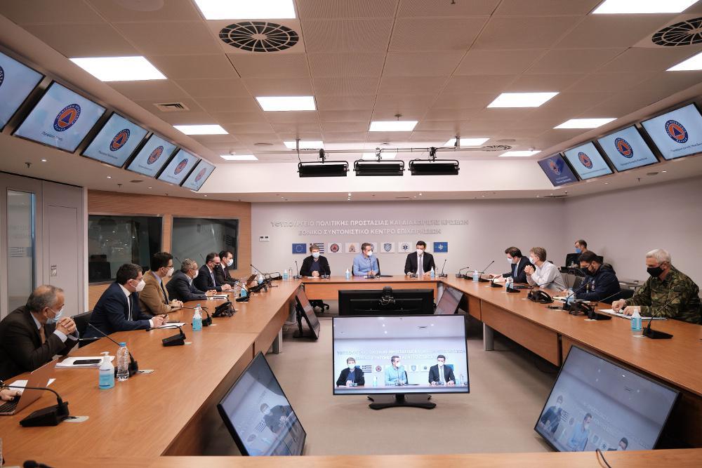 Κατά τη διάρκεια της σύσκεψης, ο κ. Μητσοτάκης ενημερώθηκε για την πορεία υλοποίησης του εμβολιασμού του υγειονομικού προσωπικού και των φιλοξενούμενων και εργαζομένων σε οίκους ευγηρίας και μονάδες αποκατάστασης, καθώς και για τη λειτουργία της εφοδιαστικής αλυσίδας την οποία υποστηρίζουν οι Ένοπλες Δυνάμεις.