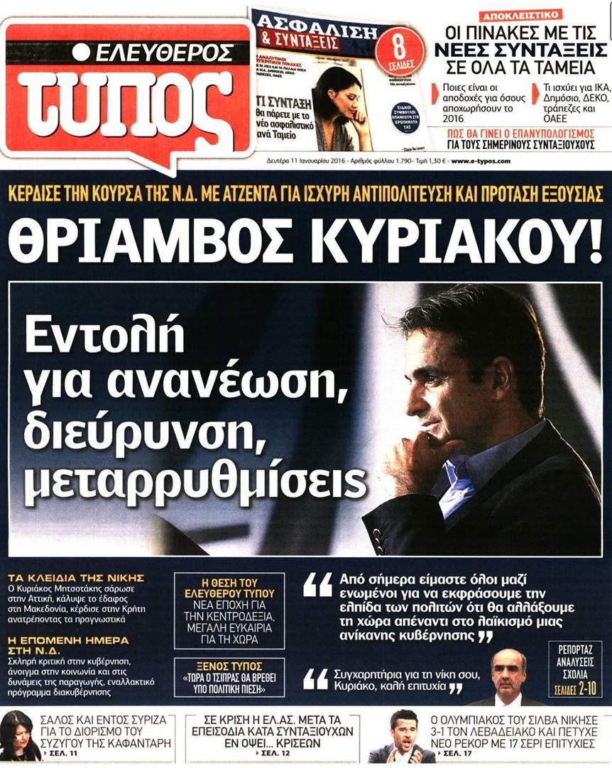 Δείτε το πρωτοσέλιδο του Ελεύθερου Τύπου της 11 Ιανουαρίου του 2016
