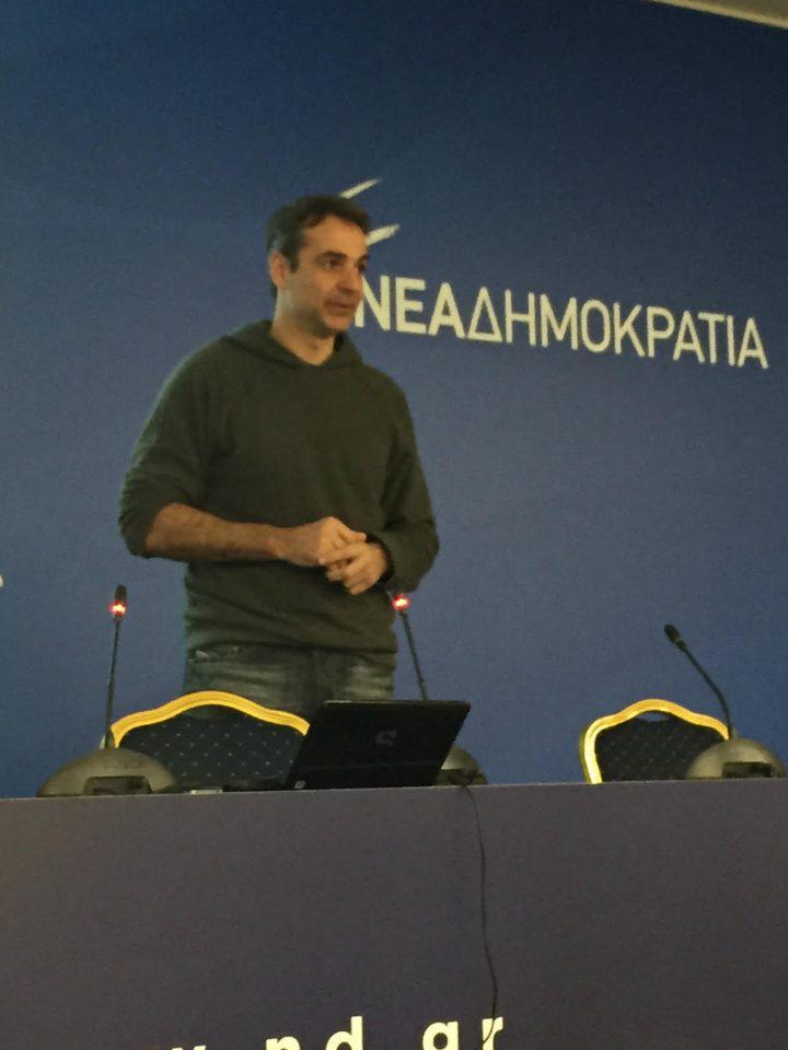 Με casual look, ο Πρόεδρος της Νέας Δημοκρατίας, εξέπληξε ευχάριστα τους συμμετέχοντες, κάθισε αρκετή ώρα μαζί τους και παρακολούθησε τον ομιλιτή, Μιχάλη Αργυρού.