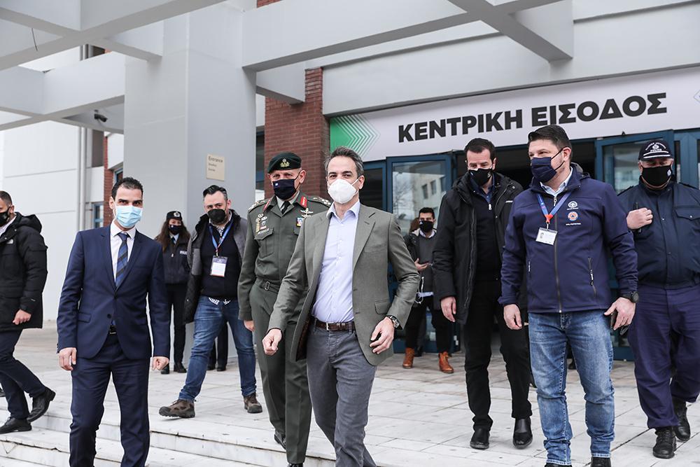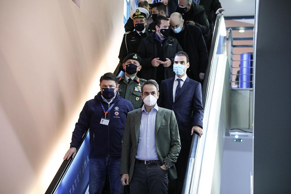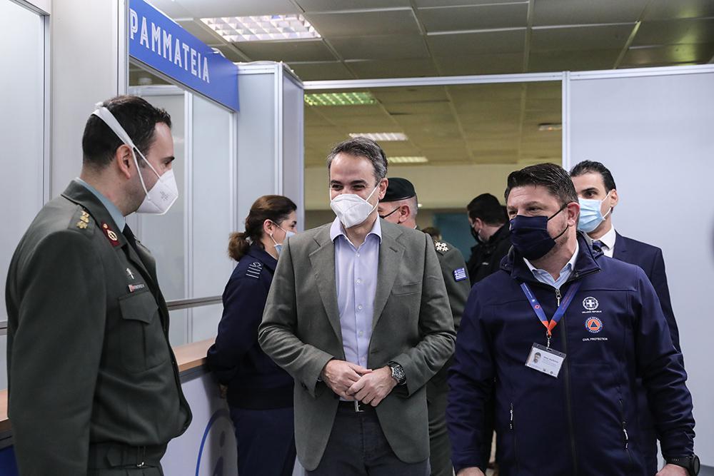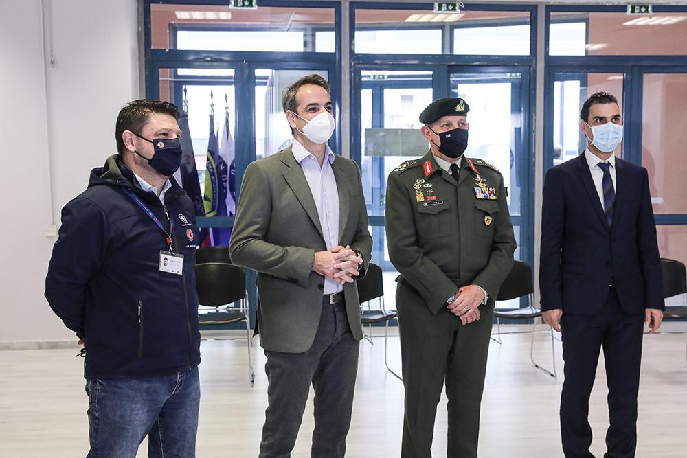 Ο πρωθυπουργός επιθεώρησε το πρώτο από τα τέσσερα μεγάλα εμβολιαστικά κέντρα τα οποία έχουν οργανωθεί προκειμένου να αυξηθεί σημαντικά η καθημερινή δυνατότητα εμβολιασμών ενώ ευχαρίστησε τα στελέχη των Ενόπλων Δυνάμεων διότι -όπως είπε- έχουν στελεχώσει το κέντρο αυτό, το οποίο θα λειτουργεί σε πρώτη φάση από τις 8 μέχρι τις 8 με δυνατότητα διεύρυνσης ωραρίου σε ένα χώρο ασφαλή.