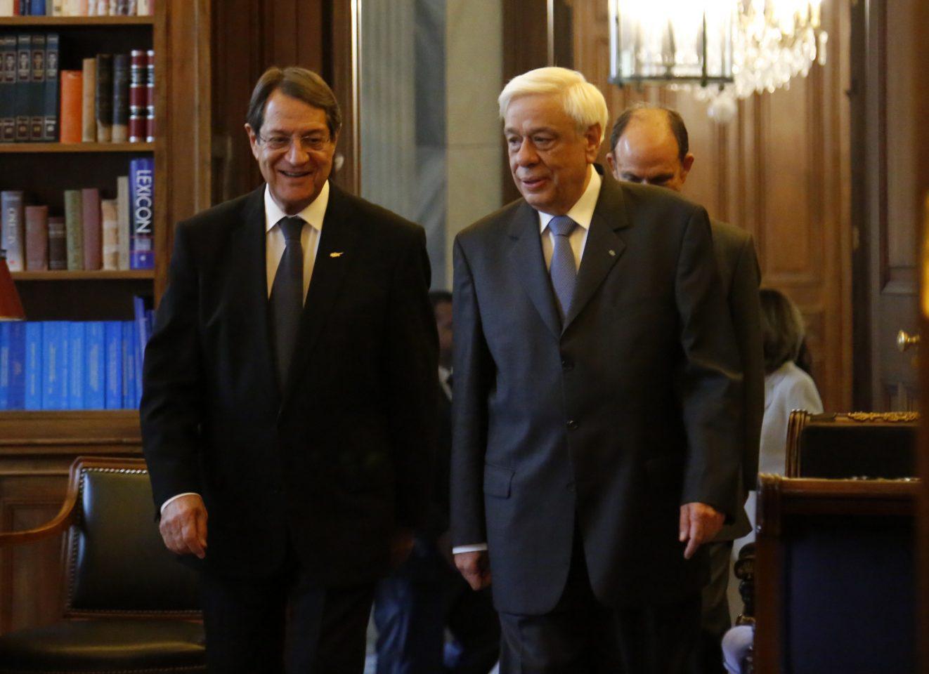 Από την πλευρά του ο Κύπριος Πρόεδρος ευχαρίστησε τον κ. Παυλόπουλο για την στάση στήριξης του ιδίου αλλά και της ελληνικής κυβέρνησης για την άψογη συνεργασία. Τόνισε πως αυτό που επιδιώκεται είναι η επίτευξη μίας λύσης συμβατής με το ευρωπαϊκό κεκτημένο που να μην μειώνει την κυριαρχία ενός κράτους μέλους, διασφαλίζοντας τα ανθρώπινα δικαιώματα χωρίς την ανάγκη εγγυήσεων και παρουσίας στρατού από οποιαδίποτε τρίτη χώρα.