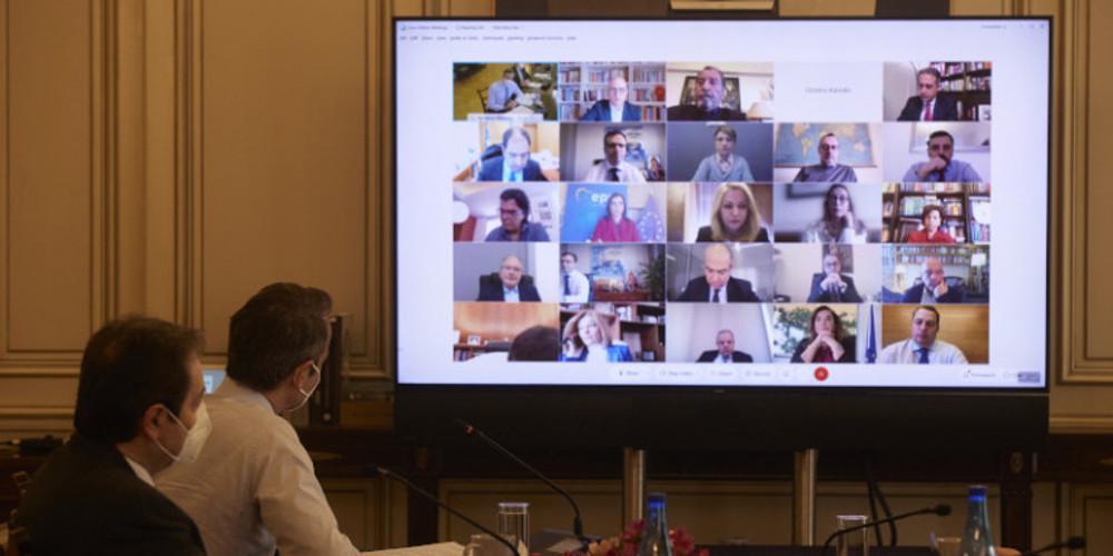 «Καλή σας μέρα κυρίες και κύριοι συνάδελφοι. Bλέπετε ότι παραμένουμε πιστοί στη δέσμευσή μας να έχουμε τακτικές συνεδριάσεις της Κοινοβουλευτικής Ομάδας χρησιμοποιώντας την τεχνολογία. Κάτι το οποίο θα συνεχίσουμε να κάνουμε μέχρι που η πανδημία θα μας επιτρέψει να μπορούμε να συναντιόμαστε με τον παραδοσιακό τρόπο. Επιτρέψτε μου κάποιες πολύ σύντομες παρατηρήσεις σχετικά με αυτά τα οποία έγιναν στη χώρα τις τελευταίες ημέρες. Η πρόσφατη επίθεση του καιρού σύμφωνα με την Εθνική Μετεωρολογική Υπηρεσία ήταν μία από τις σφοδρότερες των τελευταίων 40 ετών. Ειδικά εδώ στην Αττική χιόνιζε επί 36 ώρες, είχαμε ταυτόχρονα και εξαιρετικά ισχυρούς ανέμους που ξεπέρασαν πολλές στιγμές τα 10 μποφόρ. Καταλαβαίνετε ότι οι ανάγκες υπήρξαν πολλές και διαφορετικές. Πρώτη προτεραιότητα να μη χαθεί καμία ανθρώπινη ζωή, να μην υπάρξουν θύματα, να μην υπάρξουν οδηγοί εγκλωβισμένοι στους δρόμους, να διατηρηθεί η επικοινωνία και η τροφοδοσία με χωριά τα οποία συνήθως αποκλείονται, φυσικά να αποκατασταθούν το συντομότερο δυνατόν οι διακοπές ρεύματος και νερού ιδίως στην Αττική, όπου κάθε 2 λεπτά είχαμε ένα δέντρο το οποίο έπεφτε πάνω σε καλώδια της ΔΕΗ. Και όλα αυτά έπρεπε να γίνουν ταυτόχρονα με τη διαδικασία του εμβολιασμού που για λόγους προφανείς πρέπει να συνεχίζεται και να ξετυλίγεται βάση ενός πολύ αυστηρά προκαθορισμένου χρονοδιαγράμματος. Νομίζω ότι με το που έγινε αντιληπτό το μέγεθος του προβλήματος, το κράτος ανταποκρίθηκε συντονίζοντας τις δυνάμεις του. Πολιτική Προστασία, Αστυνομία, Πυροσβεστική, Ένοπλες Δυνάμεις, κατέβαλαν πραγματικά υπεράνθρωπες προσπάθειες, ειδικά στο μέτωπο της αποκατάστασης της ηλεκτροδότησης. Και θέλω με την ευκαιρία αυτή να ευχαριστήσω όλους όσοι βρέθηκαν και βρίσκονται ακόμα στο πεδίο. Η εντολή ήταν σαφής: κανείς δεν θα γυρίσει σπίτι του μέχρι να ηλεκτροδοτηθεί και το τελευταίο σπίτι και εκτιμώ ότι μέχρι το τέλος της ημέρας όλες οι ζημιές θα έχουν πια αποκατασταθεί. Θέλω όμως να ευχαριστήσω και τους πολίτες για την υπομονή την οποία επέδειξαν.
