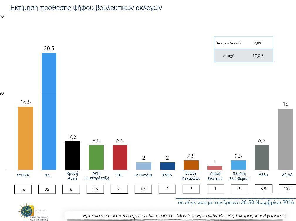 Τρίτο κόμμα παρέμενε, τότε, η Χρυσή Αυγή με 7%, ακολουθούσε το ΚΚΕ με 5,5% , η Δημοκρατική Συμπαράταξη με 4,5% , ενώ στη Βουλή έμπαιναν σύμφωνα με τα αποτελέσματα της έρευνας η Ένωση Κεντρώων του Βασίλη Λεβέντη και η Πλεύση Ελευθερίας της Ζωής Κωνσταντοπούλου.