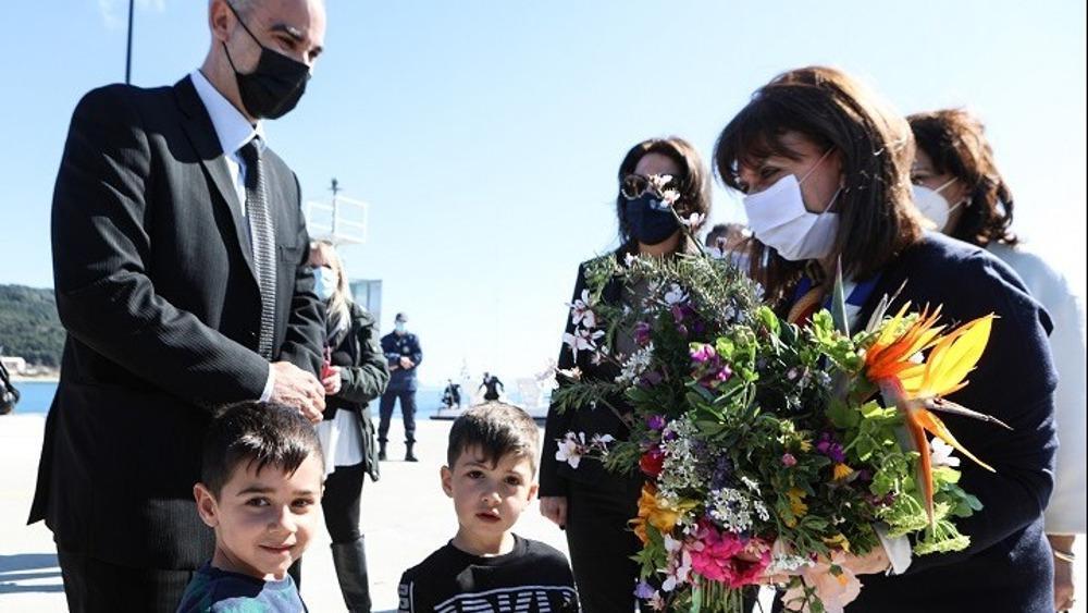 Η Πρόεδρος της Δημοκρατίας συνοδευόμενη από τον υφυπουργό Αμύνης, Αλκιβιάδη Στεφανή, έφτασε λίγα λεπτά μετά της 10.00 το πρωί στους Οθωνούς όπου επισκέφθηκε το εμβολιαστικό κέντρο του νησιού, ενώ αμέσως μετά κατέθεσε στεφάνι στο μνημείο των ηρωικώς πεσόντων ανδρών του υποβρυχίου «Πρωτεύς».