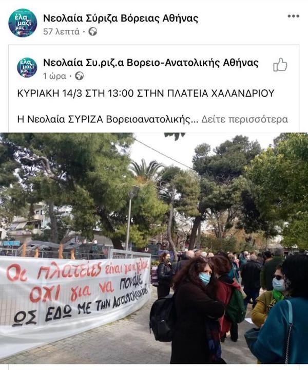 «Αδιαφορώντας για τη διασπορά του ιού και για τις ολέθριες υγειονομικες συνέπειες καλούν σε αντικυβερνητικό αγώνα. Αυτό που κάνουν στην πραγματικότητα είναι να καλούν σε αγώνα ενάντια στο σύνολο της κοινωνίας, προσβάλλοντας τη συντριπτική πλειοψηφία των πολιτών που τηρεί τα μέτρα. Ο ΣΥΡΙΖΑ δεν μπορεί να κρύβεται πλέον, ούτε πίσω από χούλιγκαν, ούτε πίσω από μπαχαλακηδες. Είναι ο ίδιος που καλεί. Η προσωπική ευθύνη του κ.Τσίπρα είναι τεράστια», προσθέτει το κυβερνών κόμμα το οποίο έδωσε παράλληλα στη δημοσιότητα φωτογραφίες από σχετικές αναρτήσεις στο διαδίκτυο.
