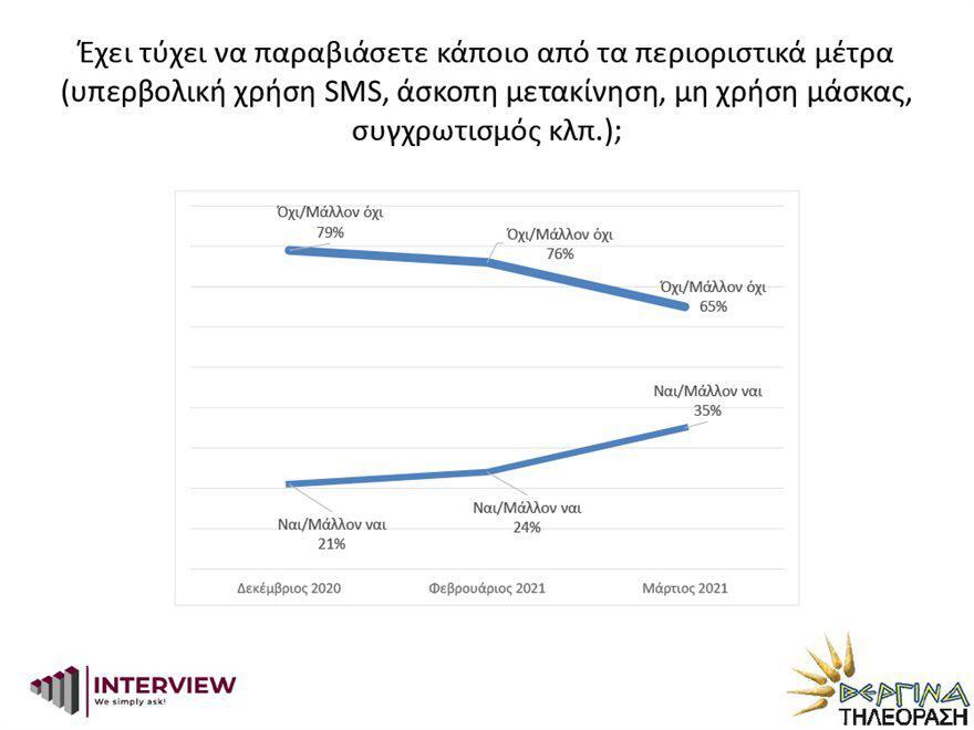 Αντίθετο στη διενέργεια διαδηλώσεων εν μέσω κορονοϊού, εμφανίζεται το 62% των πολιτών ενώ σε ερώτημα σχετικό με την επανάσταση του 1821 και το πώς ξεκίνησε οι περισσότεροι (42%) πιστεύουν ότι η έναρξή της έγινε από Έλληνες και Ξένους και 40% πιστεύει ότι ξεκίνησε μόνον από Έλληνες.